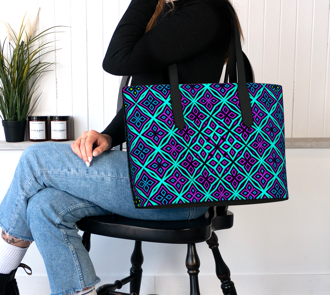 CYAN PATTERN VEGAN LEATHER TOTE BAG | CAMERON GRAY