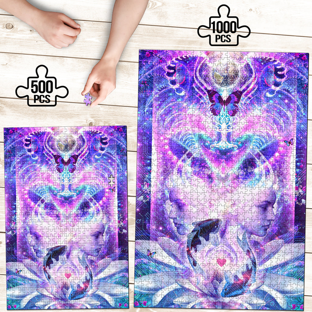 • These puzzles come in two sizes, 500 pieces or 1000 pieces – see sizing chart for detailed measurements.