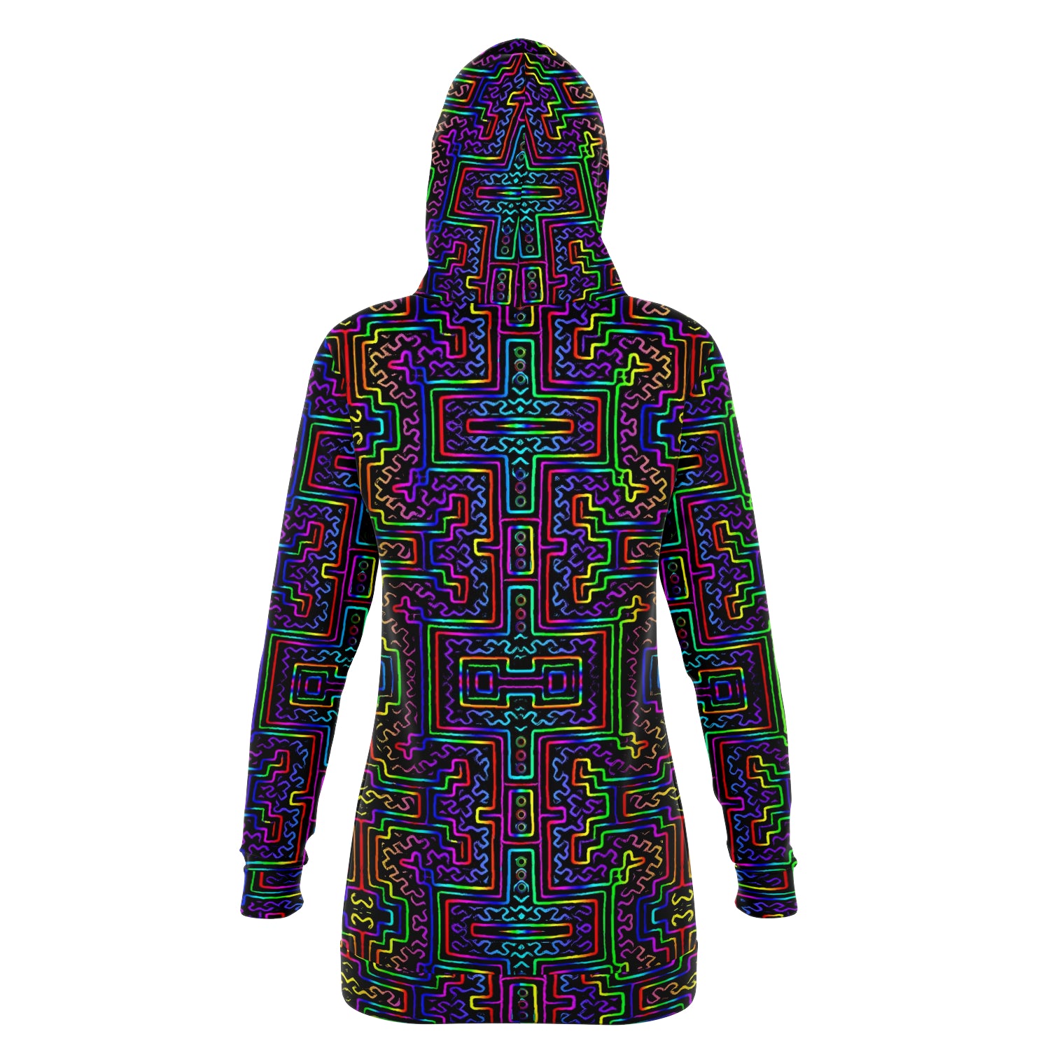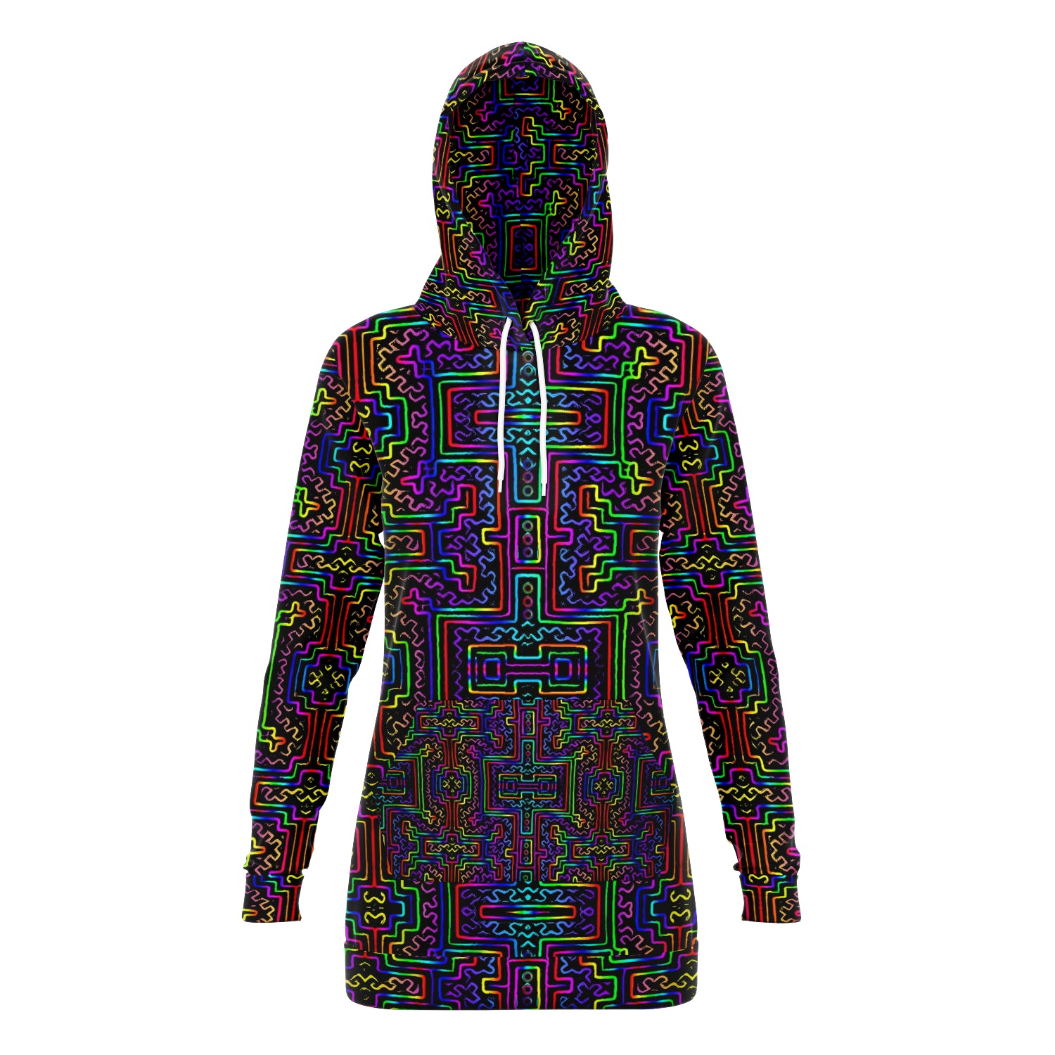 This longline hoodie is made from a premium polyester and spandex blend, making it both comfortable and durable. Fitted with a feminine shaped silhouette for ultimate comfort. Each panel is individually printed, cut and sewn to ensure a flawless graphic with no imperfections.