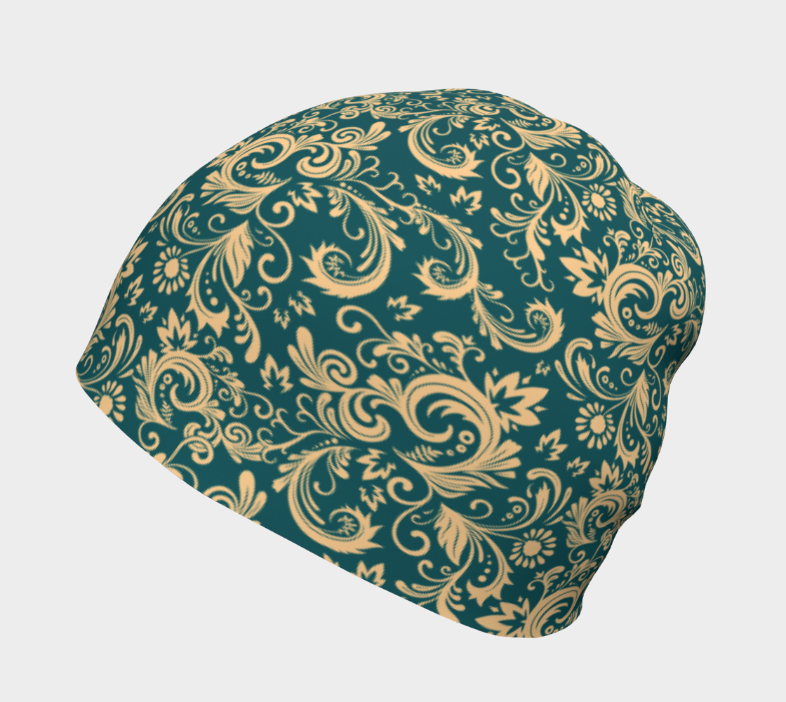 Oriental Floral Pattern - Emerald | Beanie | Mandalazed