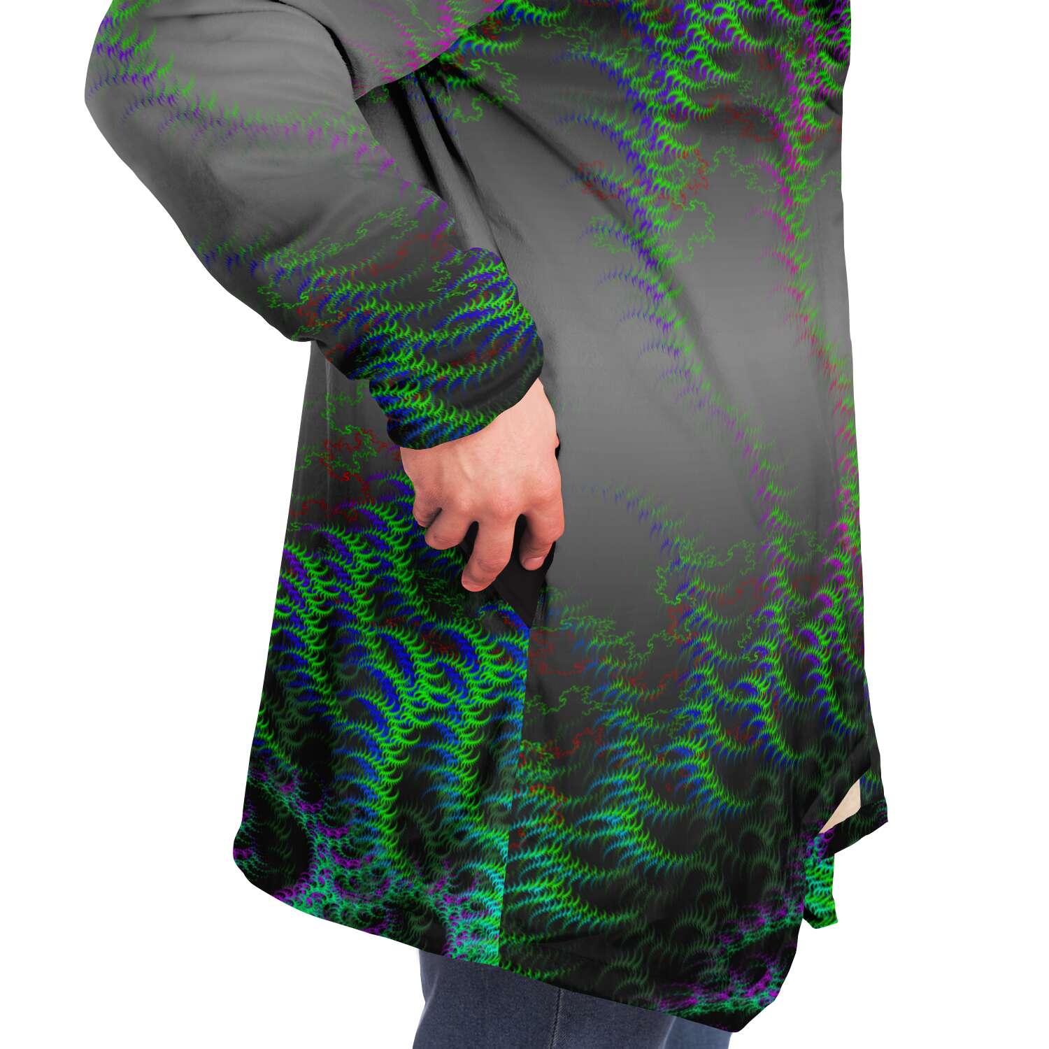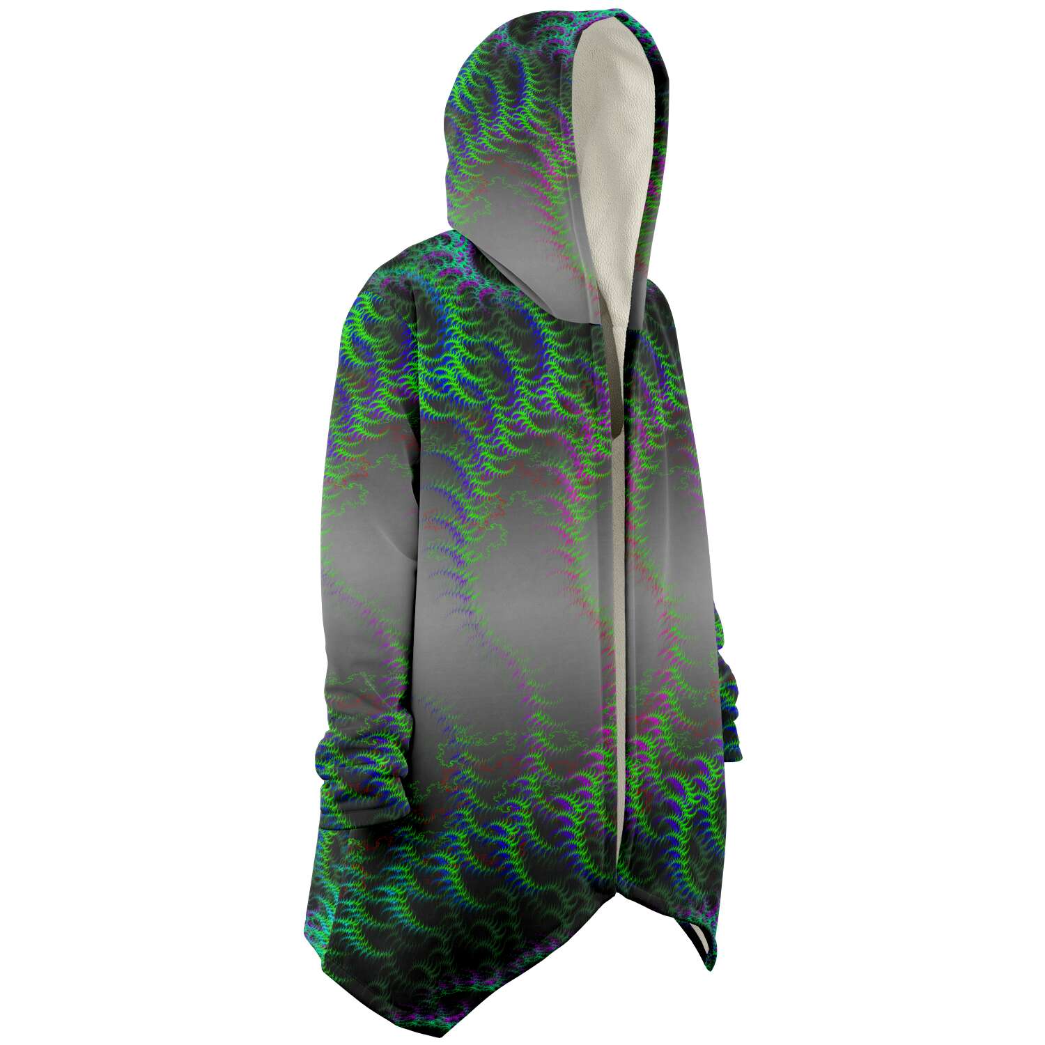 This luxurious cloak is made from an ultra-soft premium microfiber fleece lining. The outside is made with a micro-mink polyester fabric that allows the print to be high definition with vibrant colors. Featuring two deep side pockets to keep your belongings safe and your hands warm.