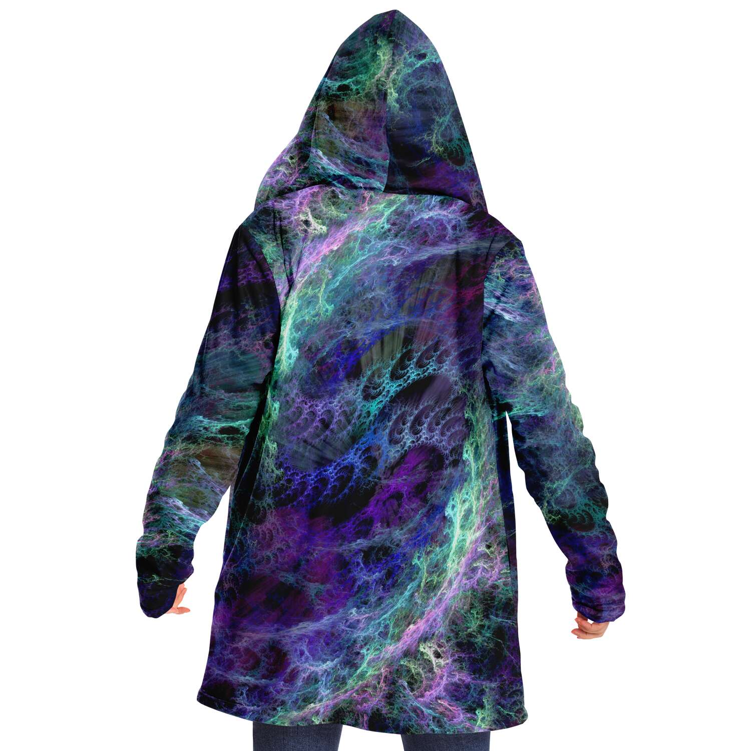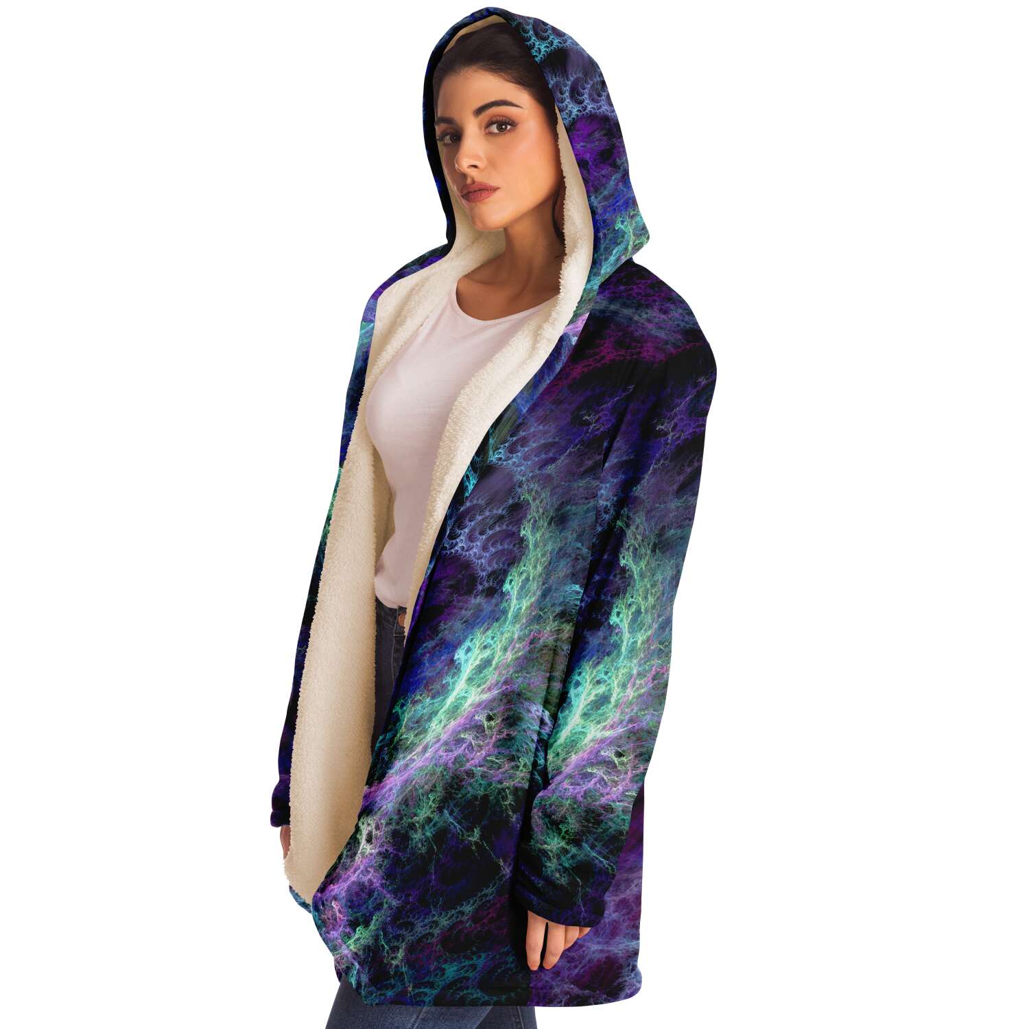 This luxurious cloak is made from an ultra-soft premium microfiber fleece lining. The outside is made with a micro-mink polyester fabric that allows the print to be high definition with vibrant colors. Featuring two deep side pockets to keep your belongings safe and your hands warm.