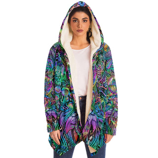 This luxurious cloak is made from an ultra-soft premium microfiber fleece lining. The outside is made with a micro-mink polyester fabric that allows the print to be high definition with vibrant colors. Featuring two deep side pockets to keep your belongings safe and your hands warm.