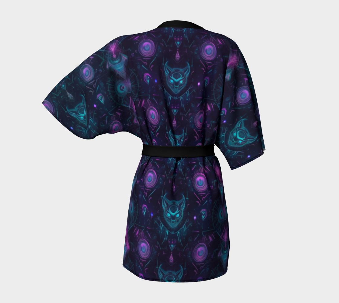 Artwork paired with luxury in this line of kimonos. Dramatic, elegant look. Perfect for special occasions, gallery shows and festivals!