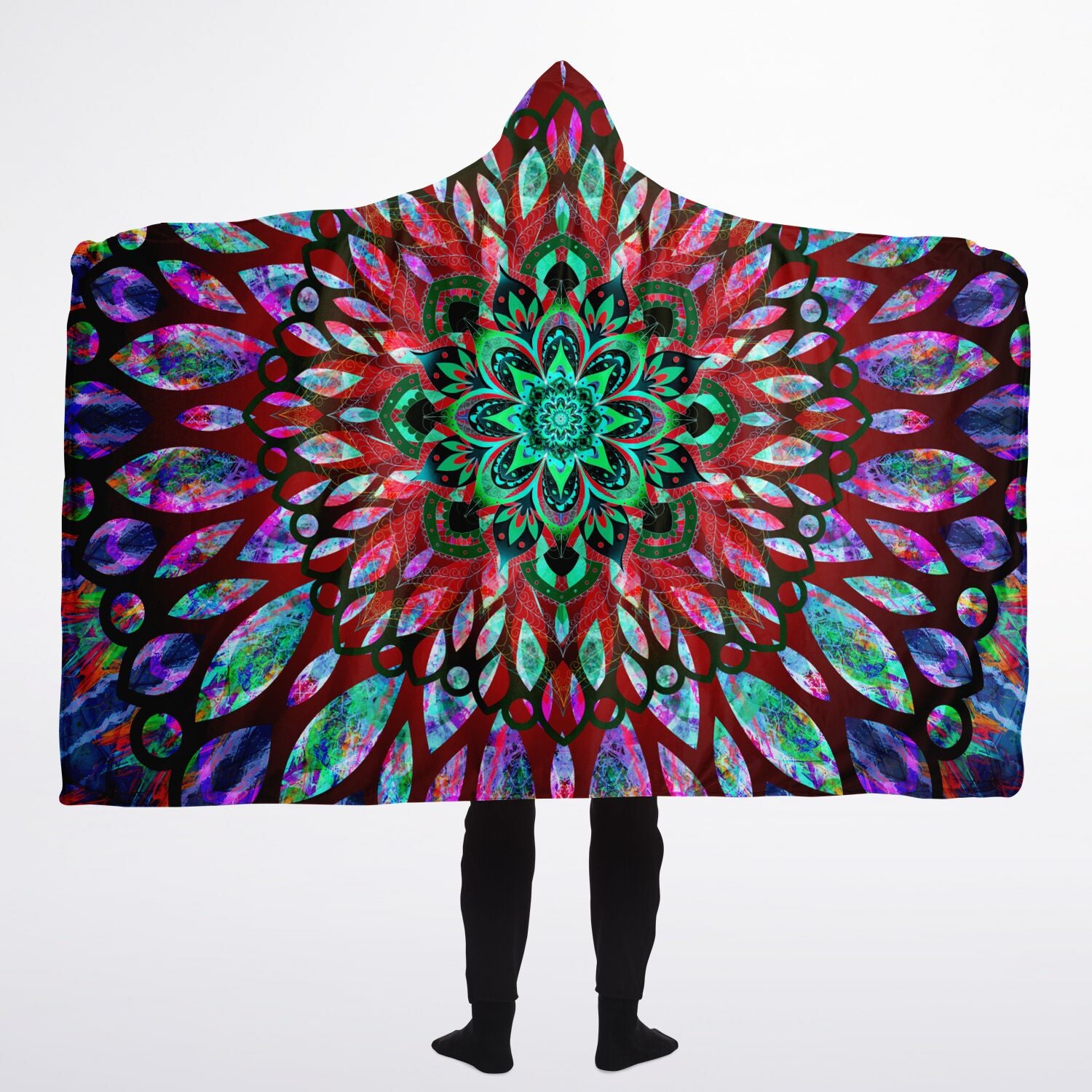 VIBRANT MANDALA Hooded Blanket Sherpa