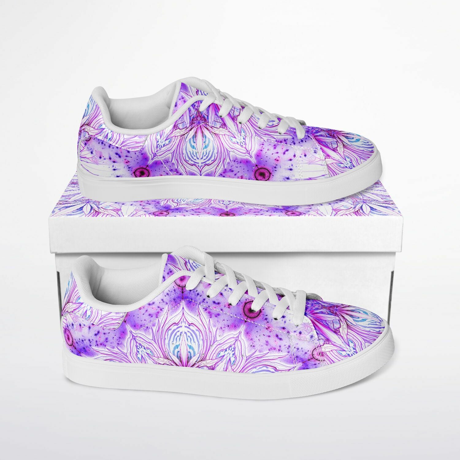 The soft leather upper feels lightweight, while showcasing rich, saturated colors that stay vivid and expressive. A flexible rubber sole — available in white or black — provides stable support, and matching laces ensure a secure, comfortable fit. The low-profile silhouette keeps the shoes easy to wear throughout the day.