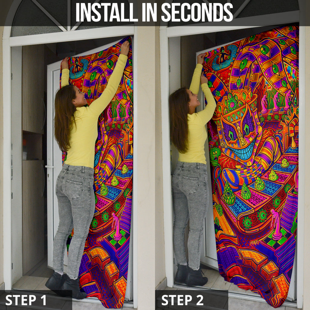 • Constructed with stretchable and elasticated fabric to fit all standard doors up to 82 inches in height!