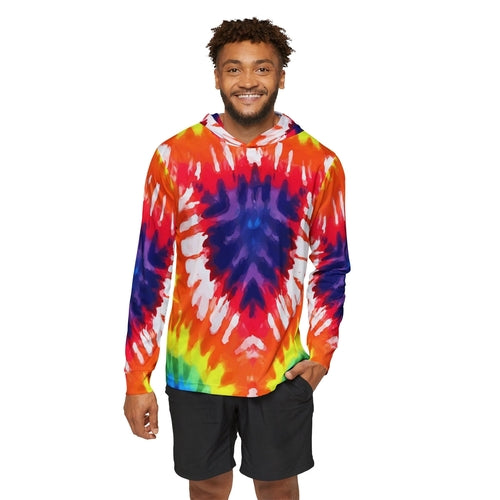 Mens Long Sleeve Sports Performance Graphic Hoodie Psychedelic Rainbow Tie Dye. This sport hoodie is perfect for indoor and outdoor activities. Their UPF 50+ sun protection keeps harmful UVA and UVB rays at bay while its moisture-wicking properties keep the wearer dry and comfortable under peak performance conditions. Whether you are working out, cycling, running, or simply lounging on a casual day, this hoodie remains breathable, comfortable, and stylish.