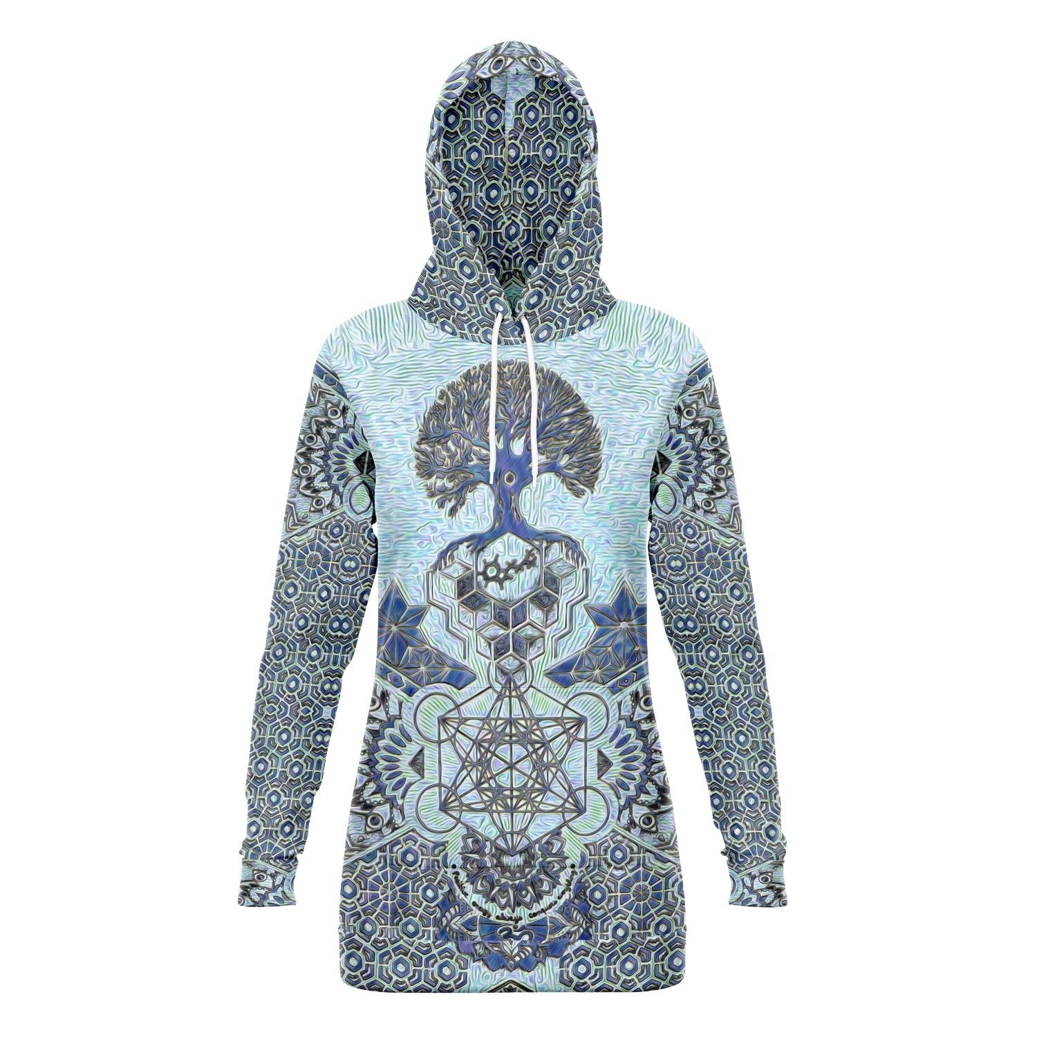 Geometric Faded Blue | Longline Hoodie | Mil Et Une