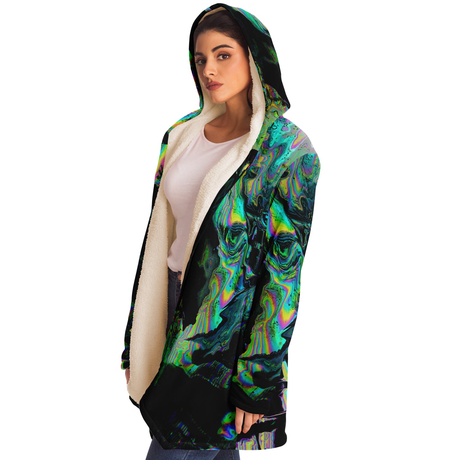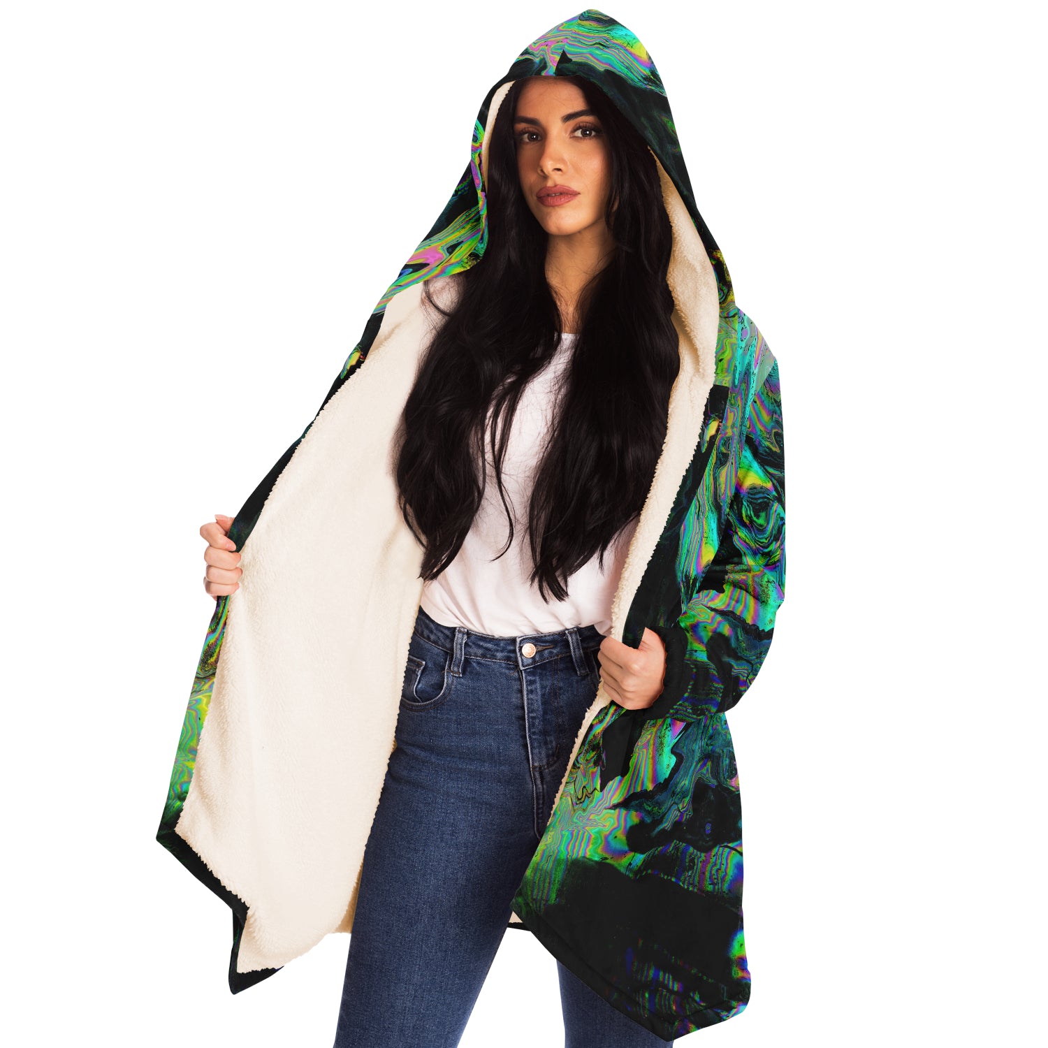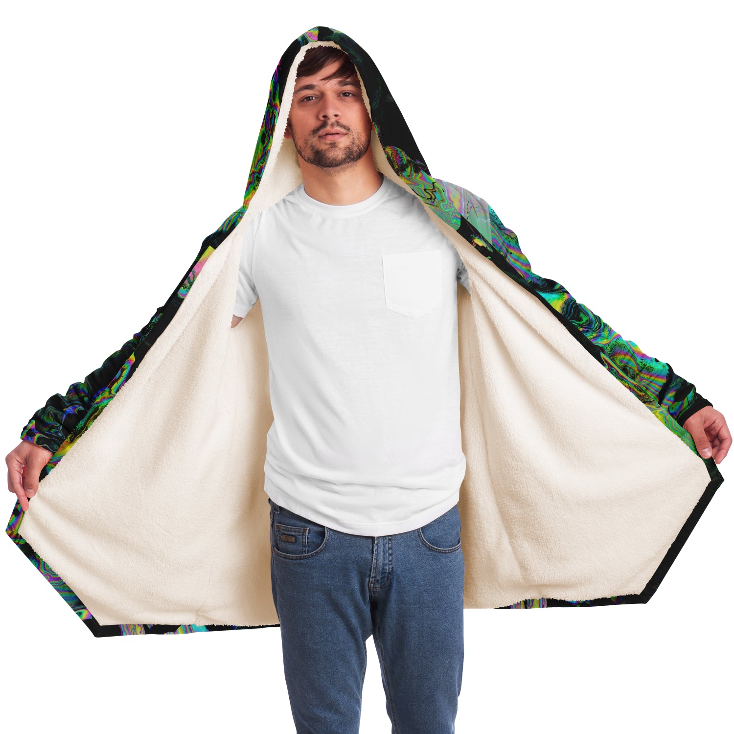This luxurious cloak is made from an ultra-soft premium microfiber fleece lining. The outside is made with a micro-mink polyester fabric that allows the print to be high definition with vibrant colors. Featuring two deep side pockets to keep your belongings safe and your hands warm.