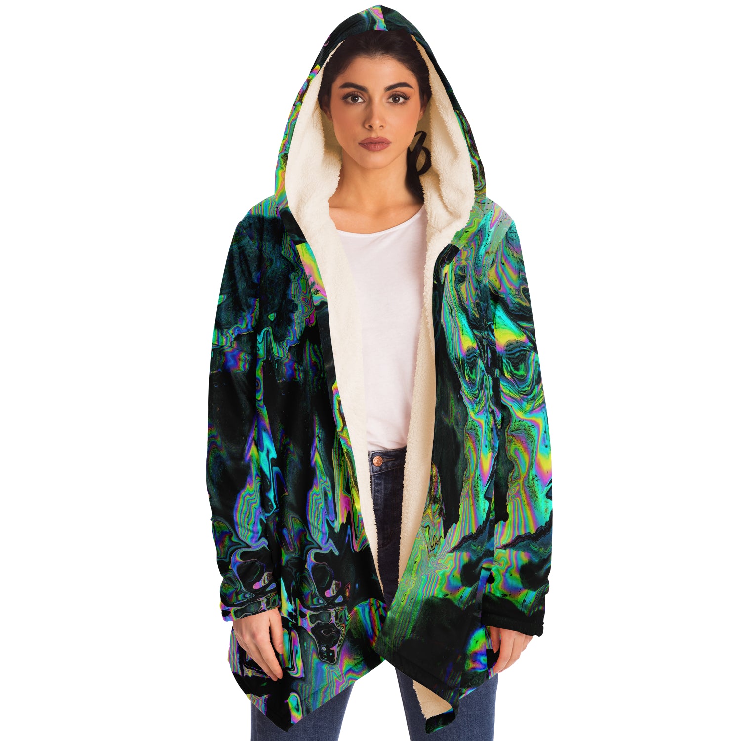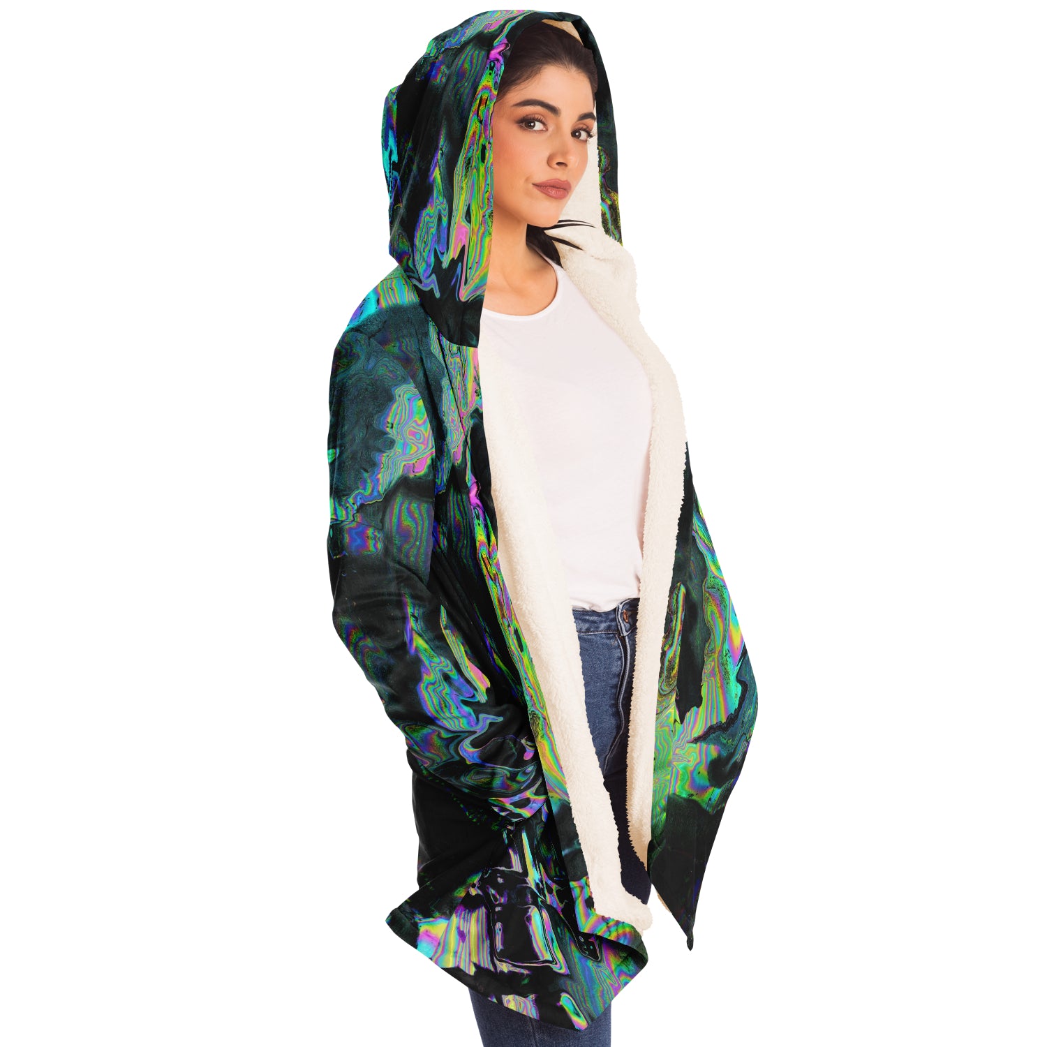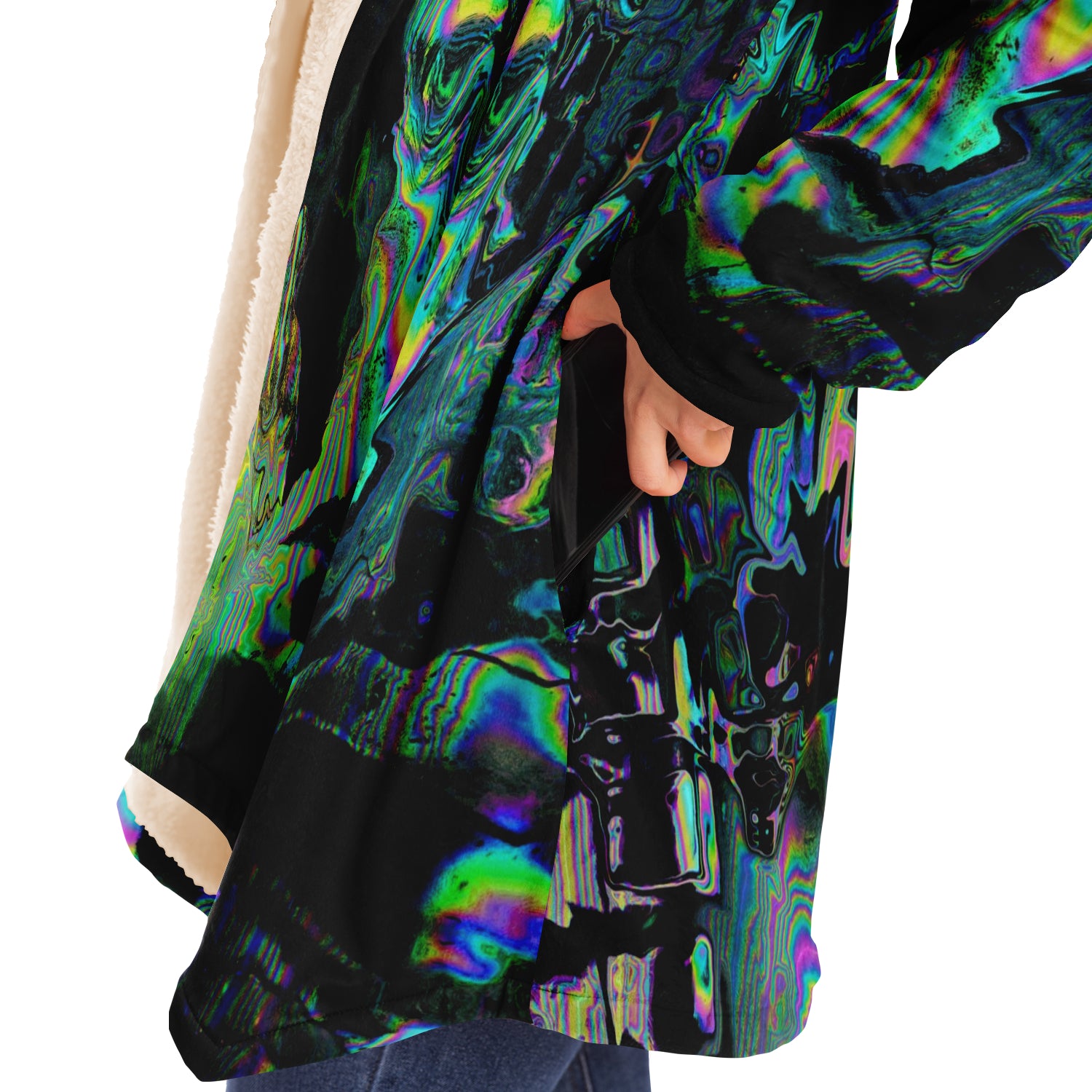 This luxurious cloak is made from an ultra-soft premium microfiber fleece lining. The outside is made with a micro-mink polyester fabric that allows the print to be high definition with vibrant colors. Featuring two deep side pockets to keep your belongings safe and your hands warm.