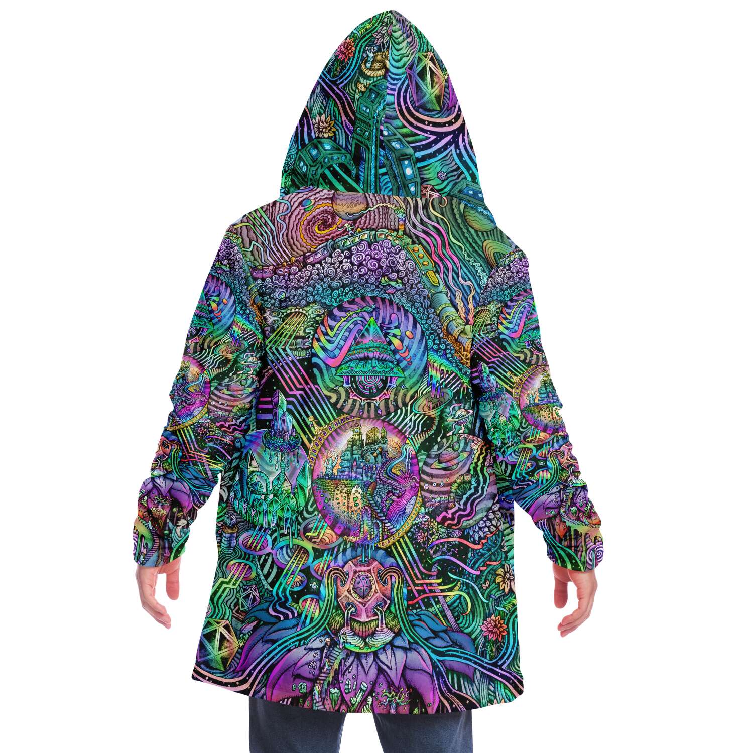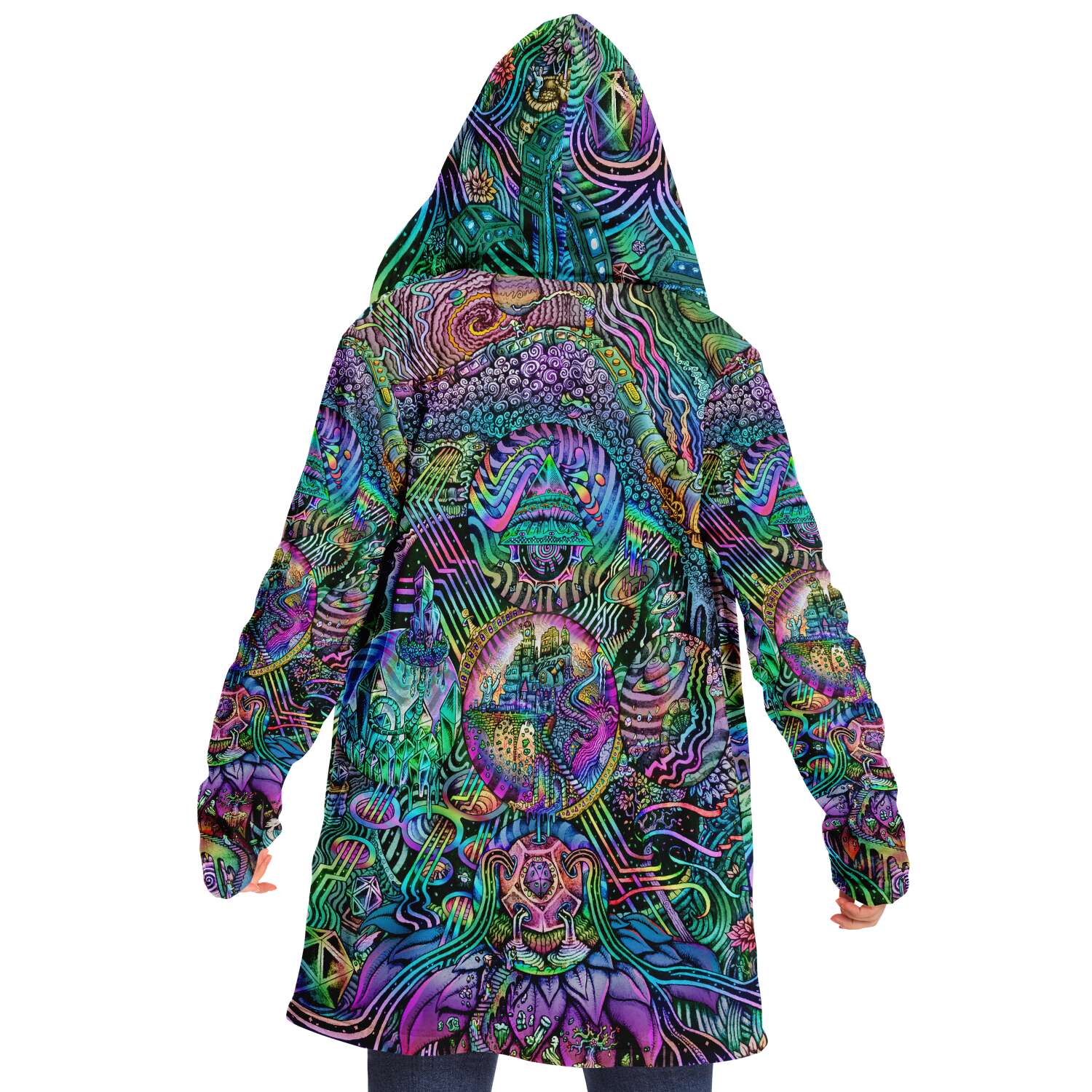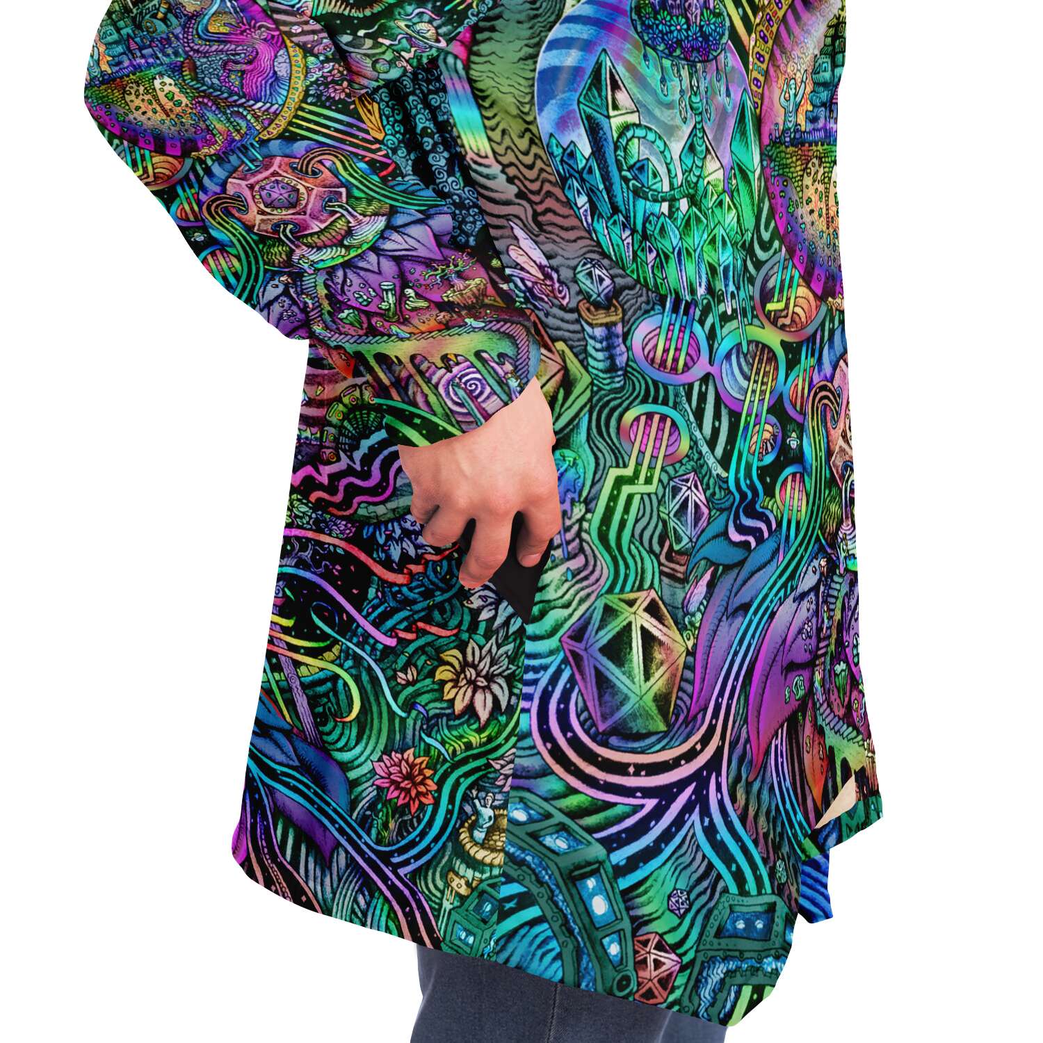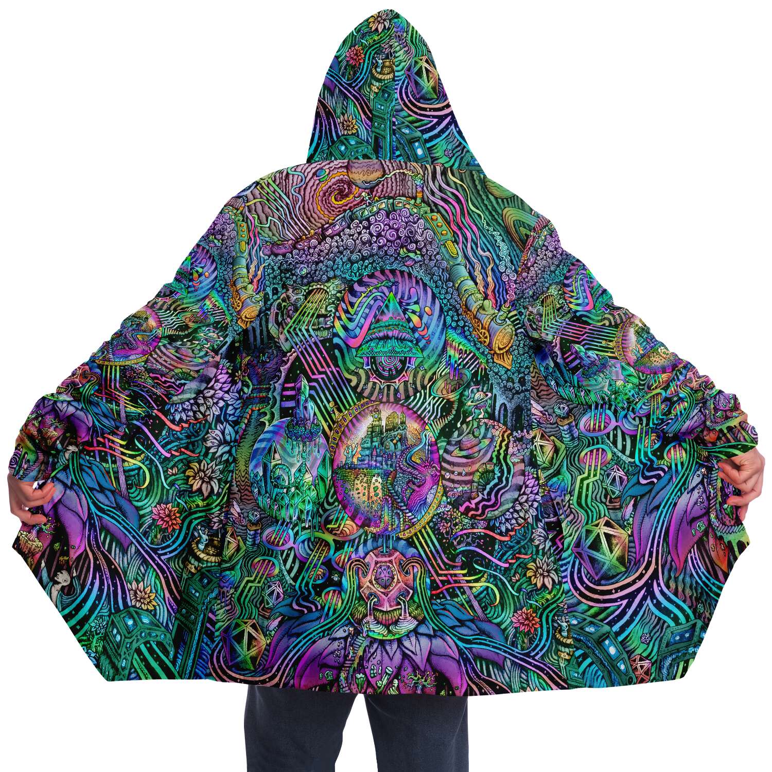 This luxurious cloak is made from an ultra-soft premium microfiber fleece lining. The outside is made with a micro-mink polyester fabric that allows the print to be high definition with vibrant colors. Featuring two deep side pockets to keep your belongings safe and your hands warm.