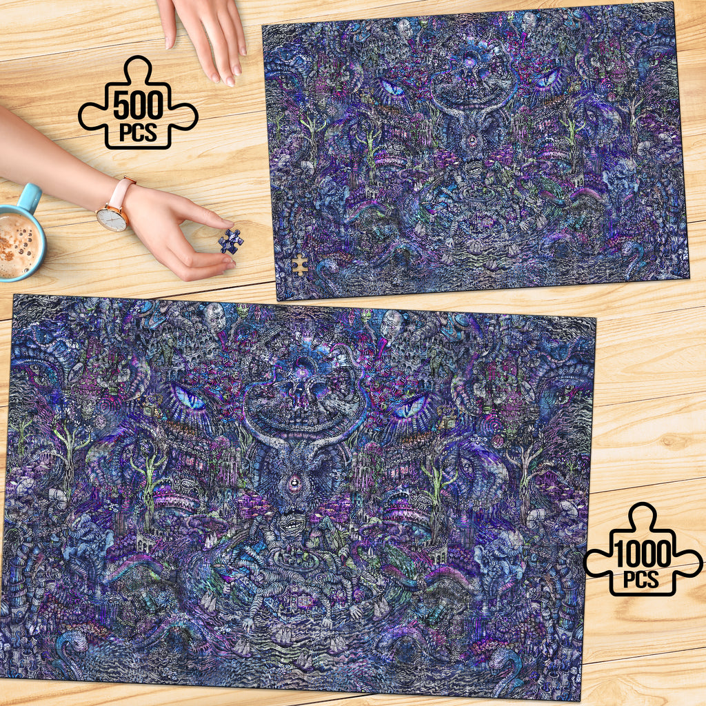 Ready to traverse the labyrinthine corridors of your mind? Opt for a 500-piece voyage to higher dimensions or a 1000-piece expedition into psychedelic oblivion. Prepare to spiral infinitely in this kaleidoscopic quest.