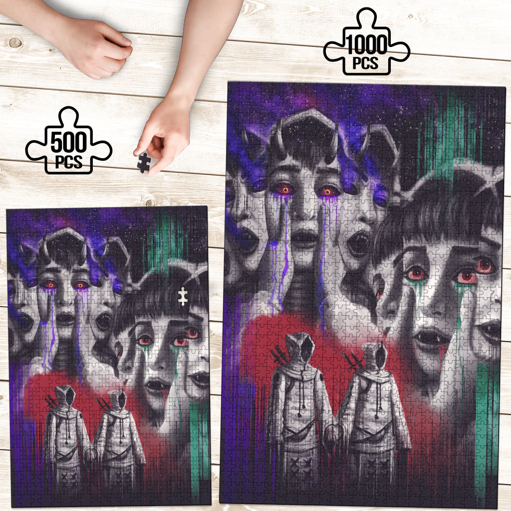 • These puzzles come in two sizes, 500 pieces or 1000 pieces – see sizing chart for detailed measurements.