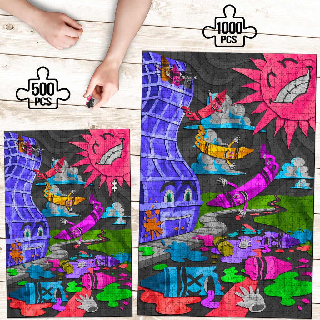 • These puzzles come in two sizes, 500 pieces or 1000 pieces – see sizing chart for detailed measurements.