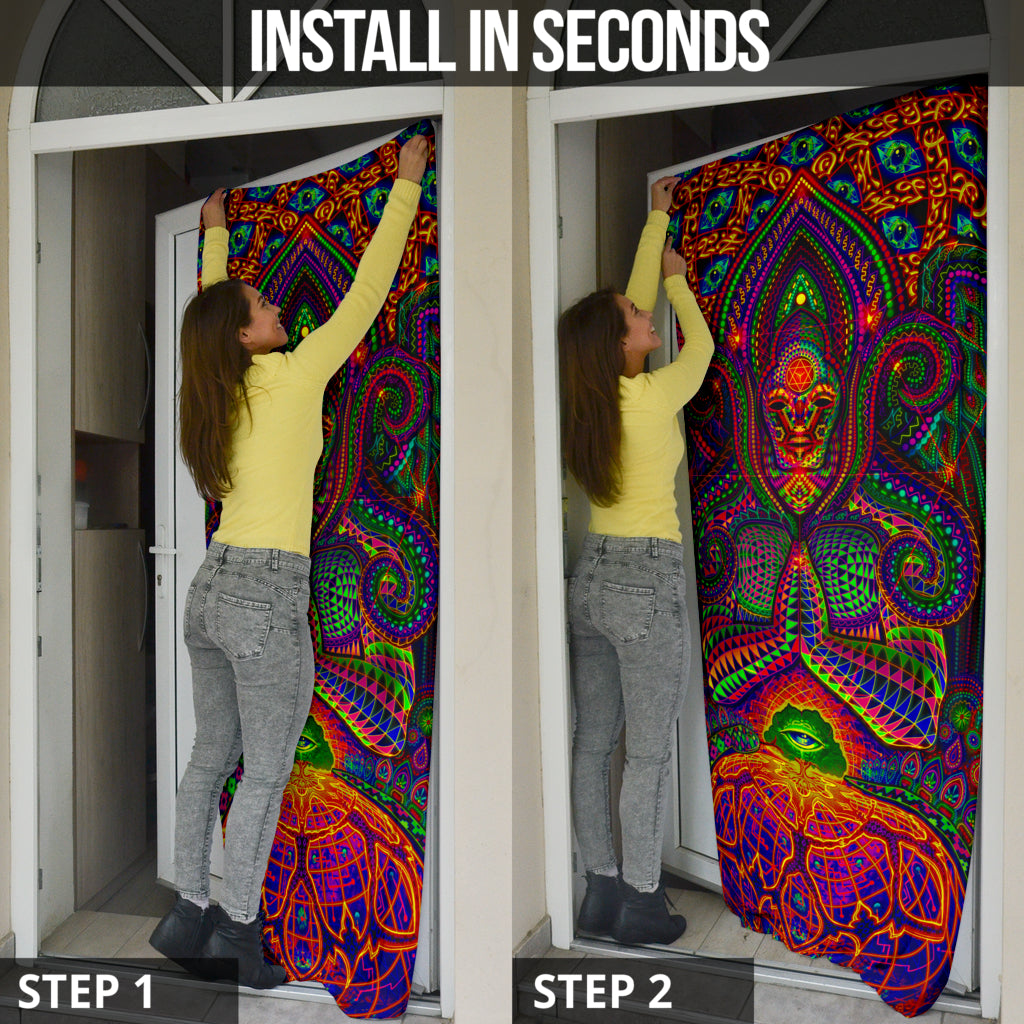 • Constructed with stretchable and elasticated fabric to fit all standard doors up to 82 inches in height!