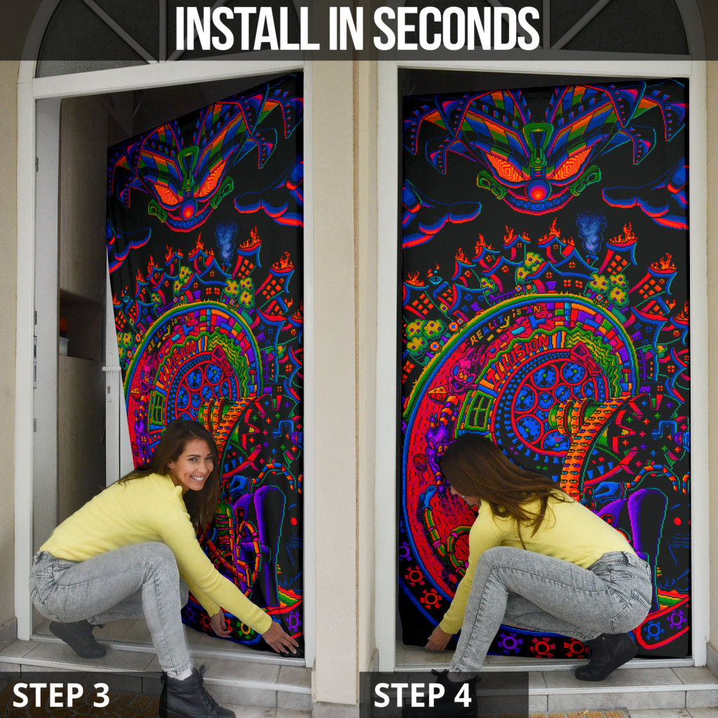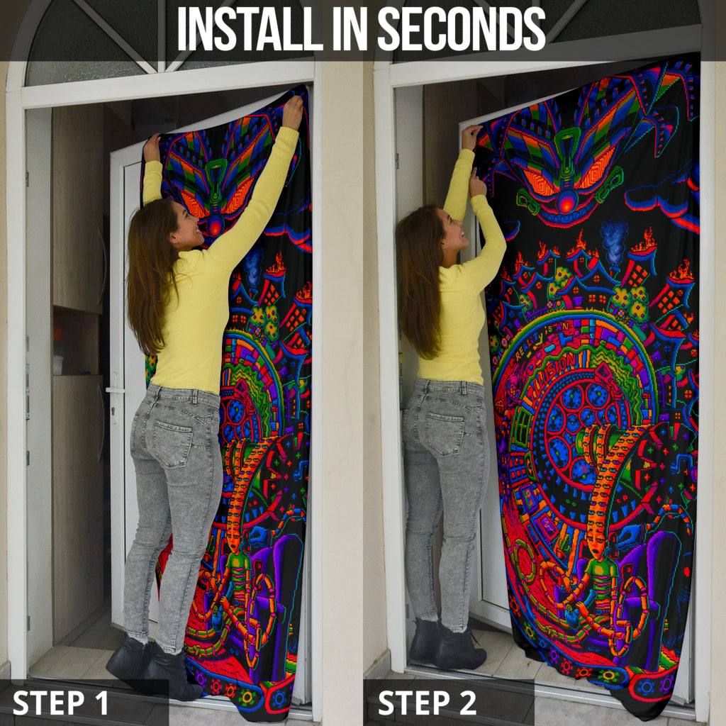 • Constructed with stretchable and elasticated fabric to fit all standard doors up to 82 inches in height!