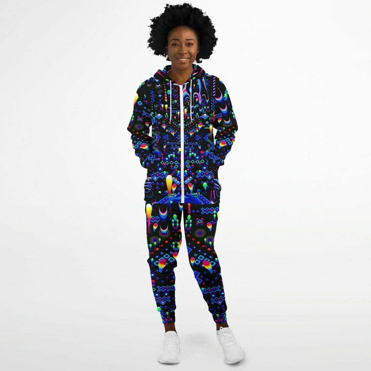 Your stylish designs will definitely be on-point with this fashion ziphoodie and jogger set. The ziphoodie comes with a double layer hood and a kangaroo pocket, while the jogger comes with two side pockets.
