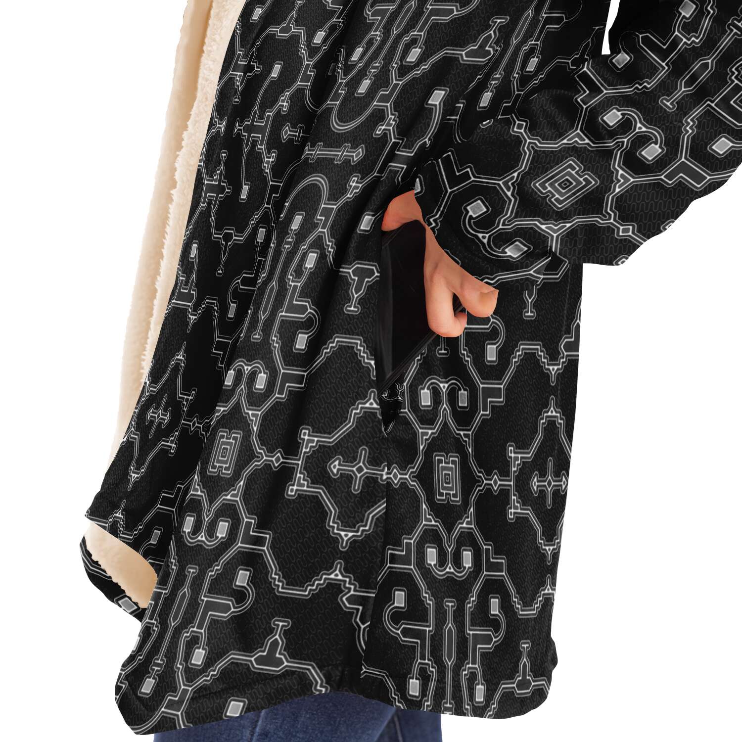 This luxurious cloak is made from an ultra-soft premium microfiber fleece lining. The outside is made with a micro-mink polyester fabric that allows the print to be high definition with vibrant colors. Featuring two deep side pockets to keep your belongings safe and your hands warm.