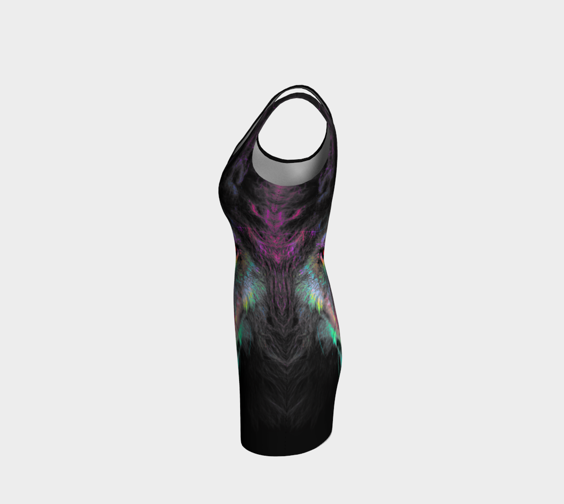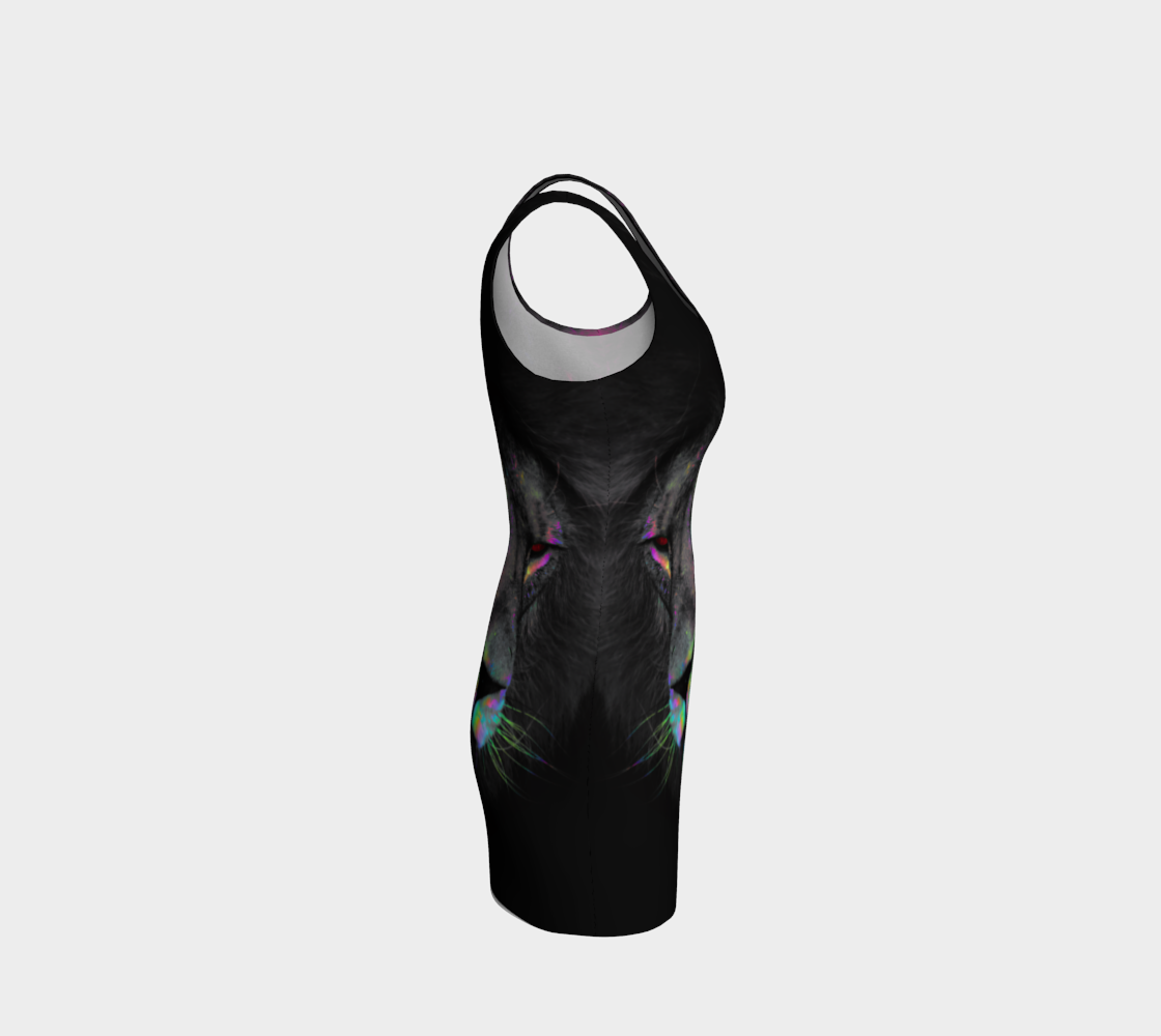 • Fitted dress hugs your body and the bottom falls just above mid-thigh on most people