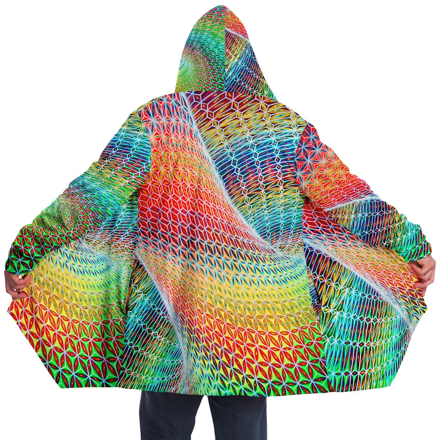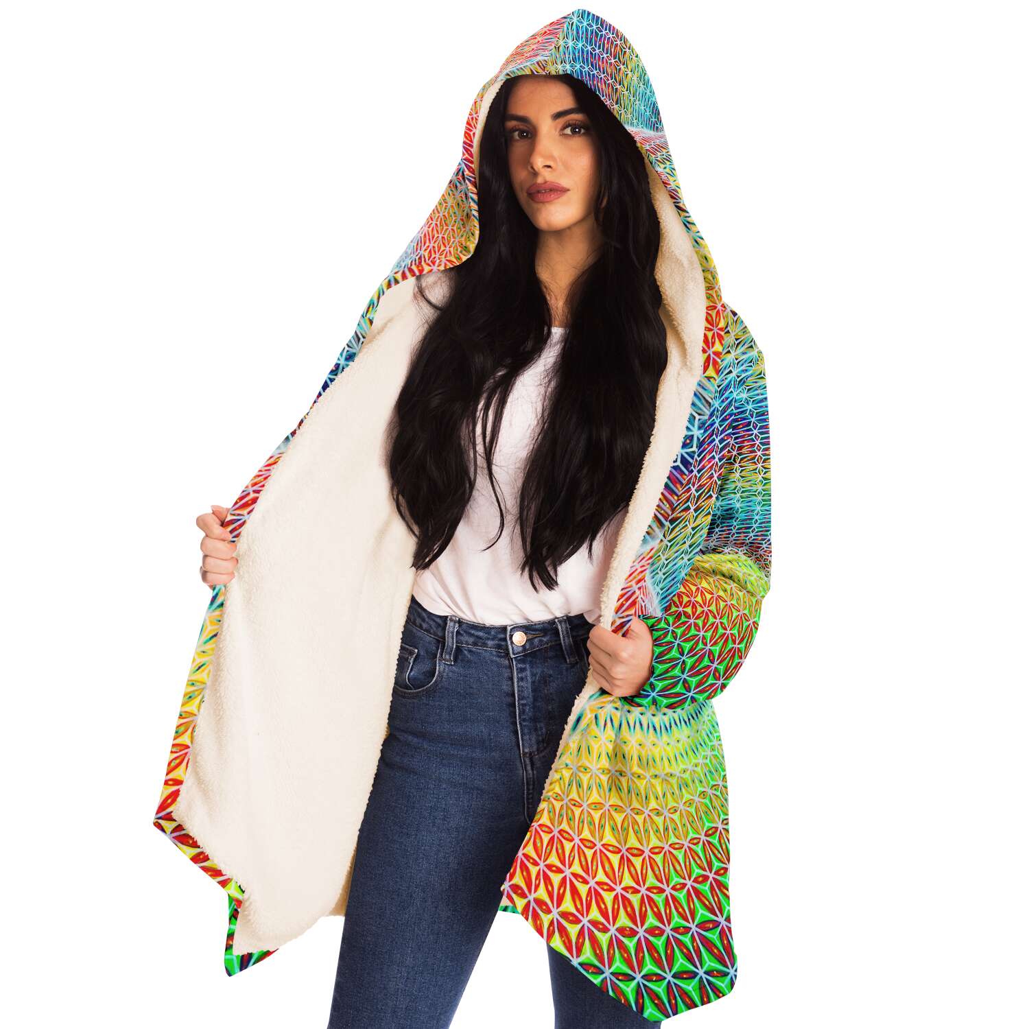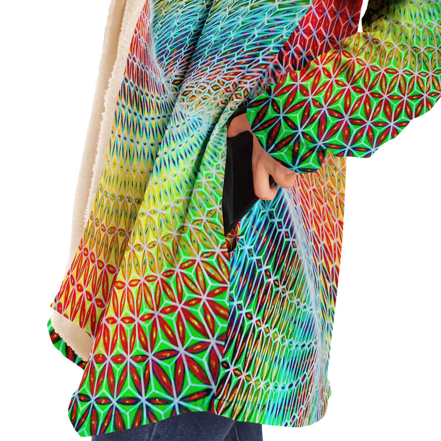 This luxurious cloak is made from an ultra-soft premium microfiber fleece lining. The outside is made with a micro-mink polyester fabric that allows the print to be high definition with vibrant colors. Featuring two deep side pockets to keep your belongings safe and your hands warm.