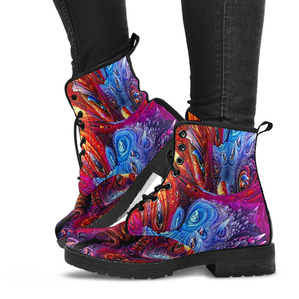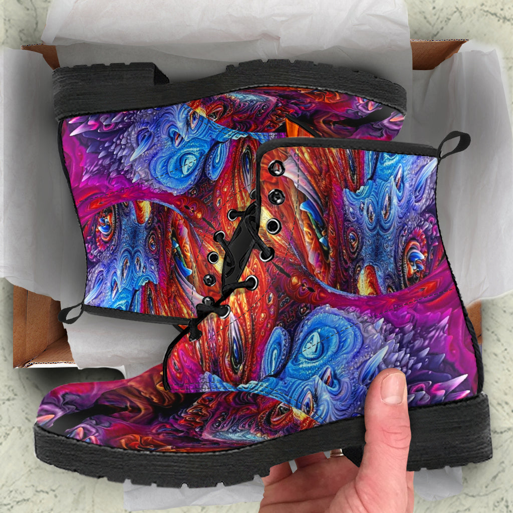 • Features vegan-friendly leather with a double-sided print and rounded toe construction.