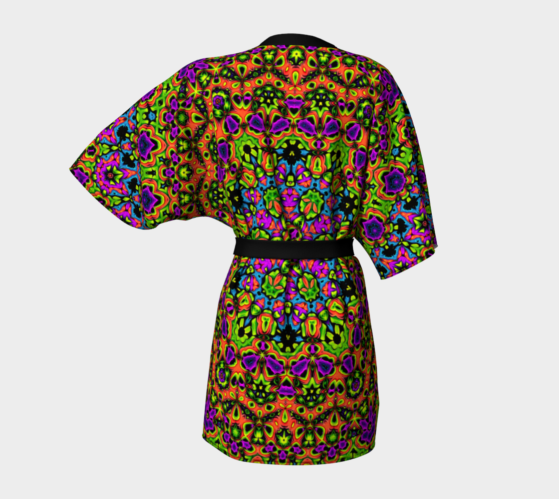 Artwork paired with luxury in this line of kimonos. Dramatic, elegant look. Perfect for special occasions, gallery shows and festivals!