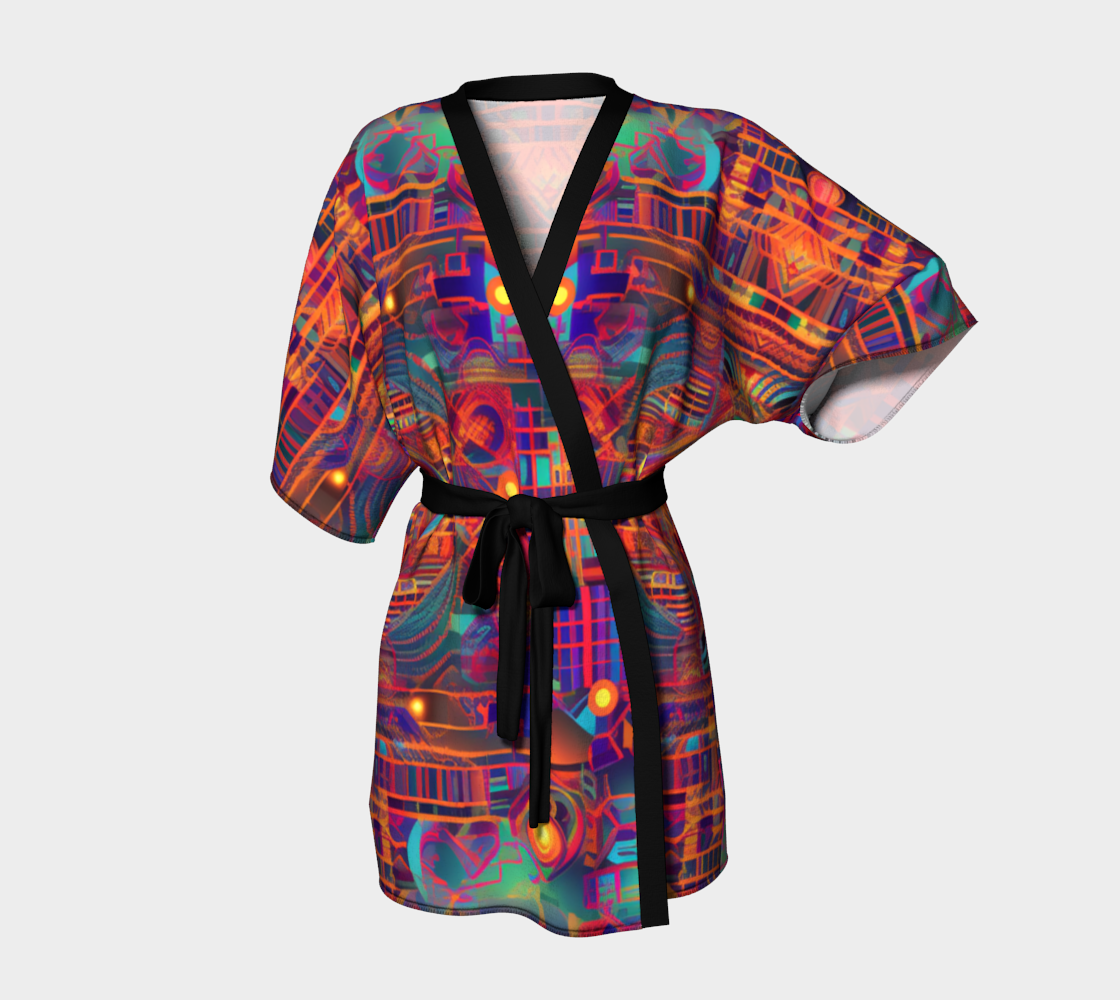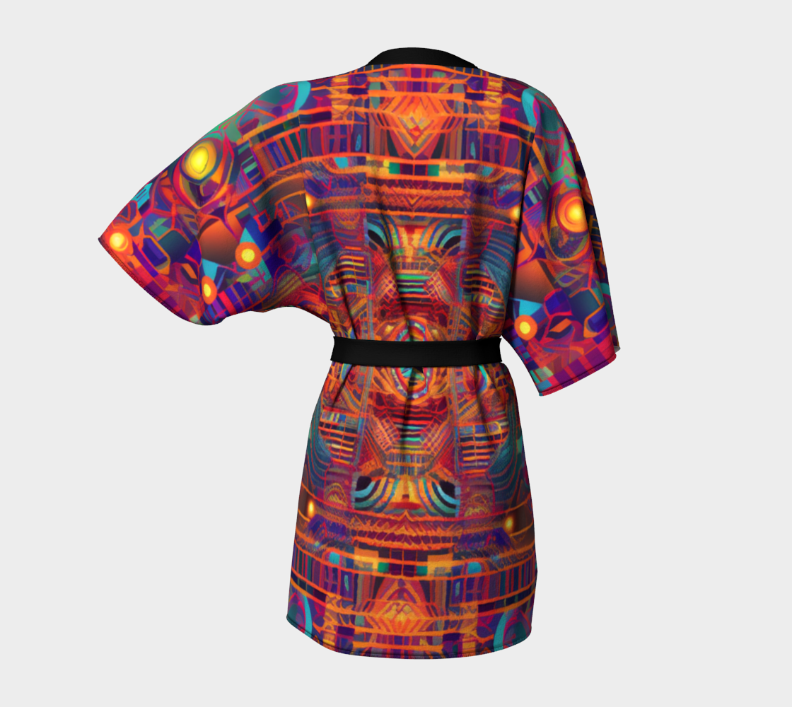 Artwork paired with luxury in this line of kimonos. Dramatic, elegant look. Perfect for special occasions, gallery shows and festivals!