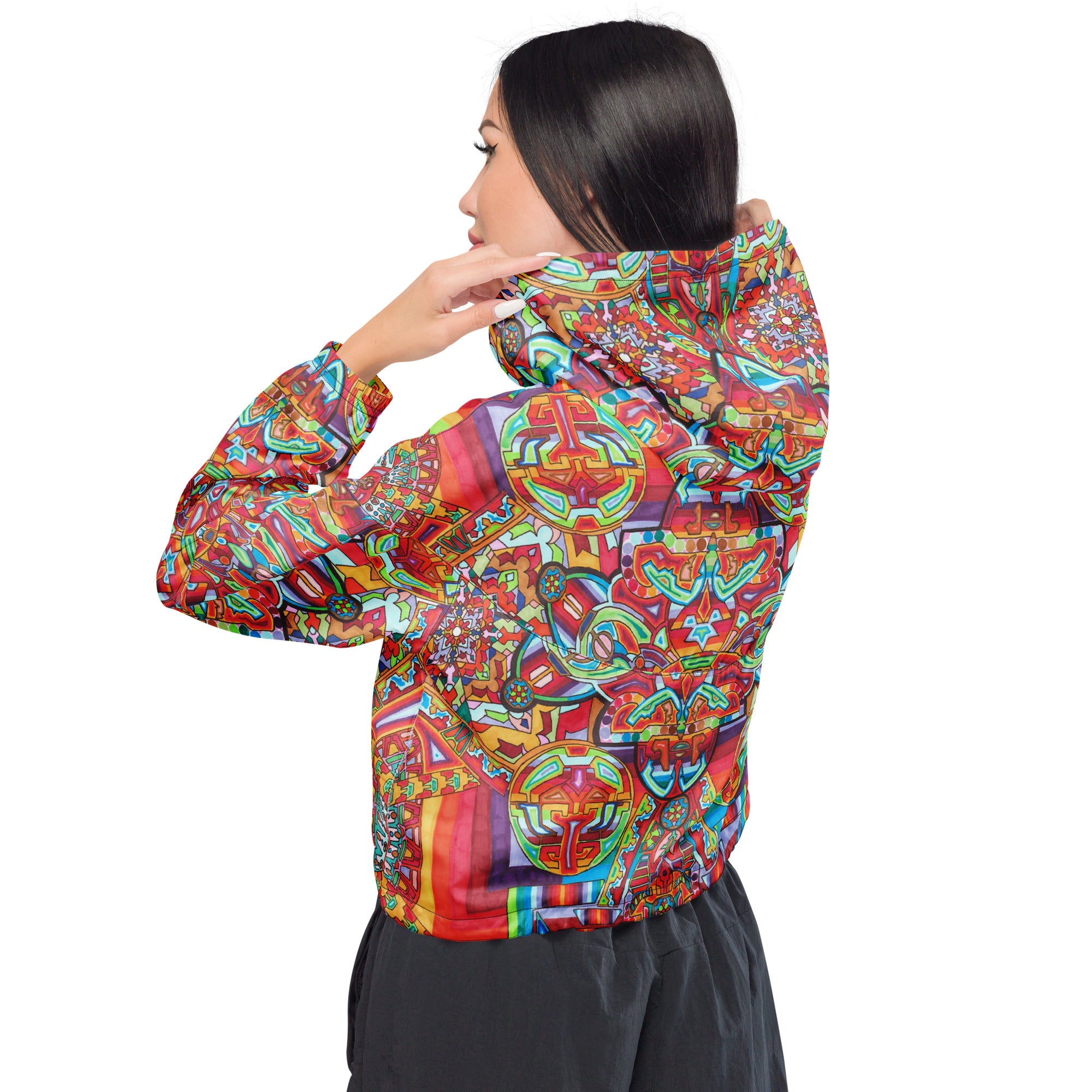 Hike in style without the rain getting in the way—this cropped windbreaker is lightweight, waterproof, and suitable for every kind of adventure. Features include side-slit pockets, breathable mesh lining, and adjustable drawcords on the hood and waist to support all your stylish outdoor looks.
