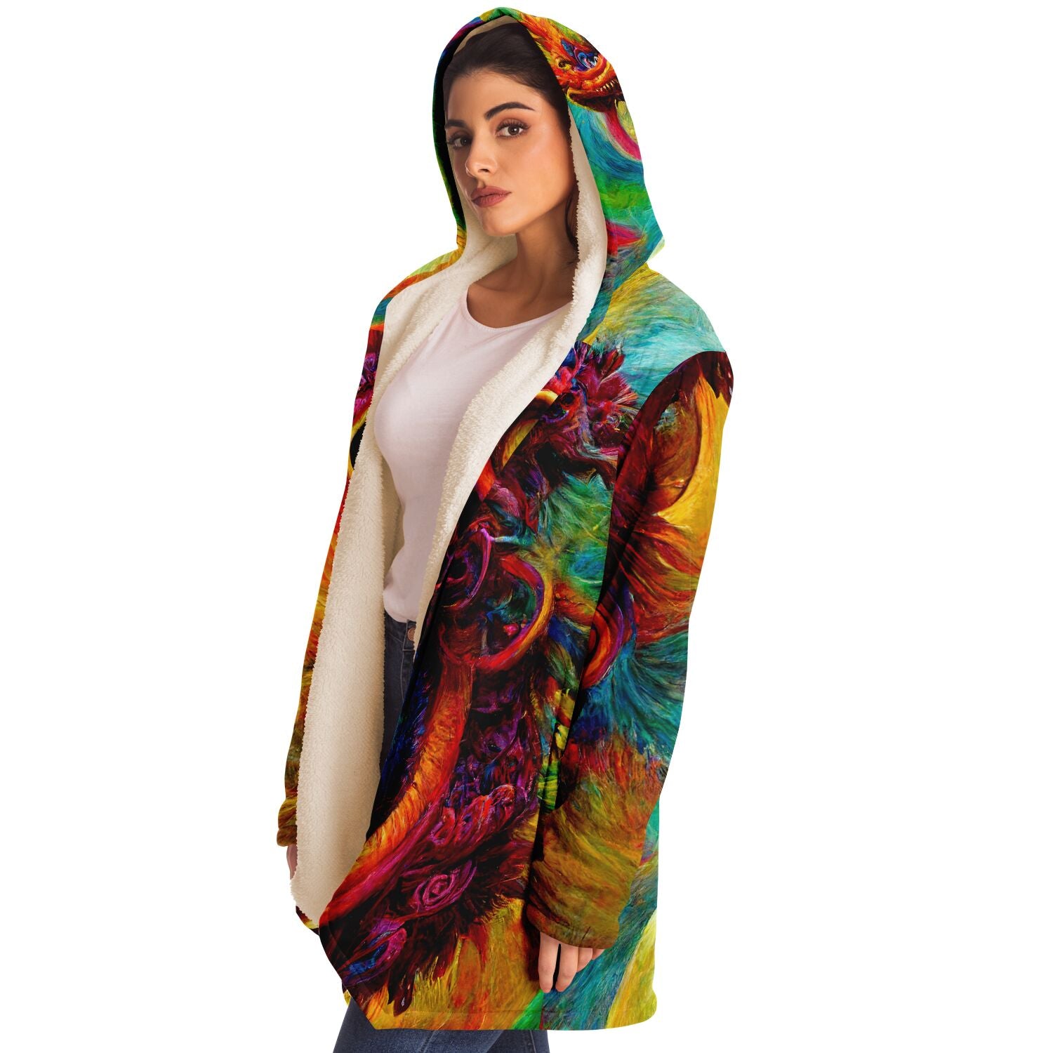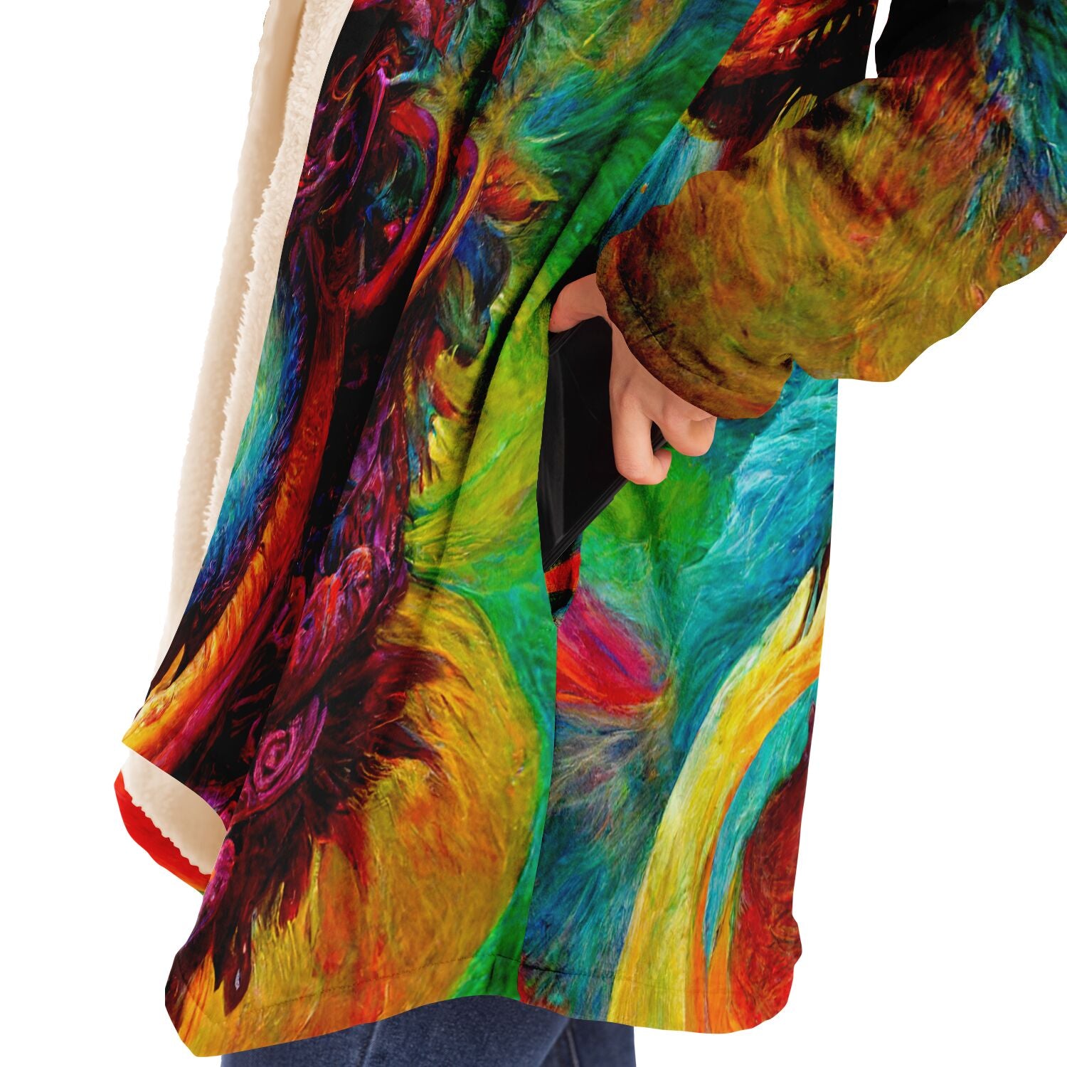 This luxurious cloak is made from an ultra-soft premium microfiber fleece lining. The outside is made with a micro-mink polyester fabric that allows the print to be high definition with vibrant colors. Featuring two deep side pockets to keep your belongings safe and your hands warm.