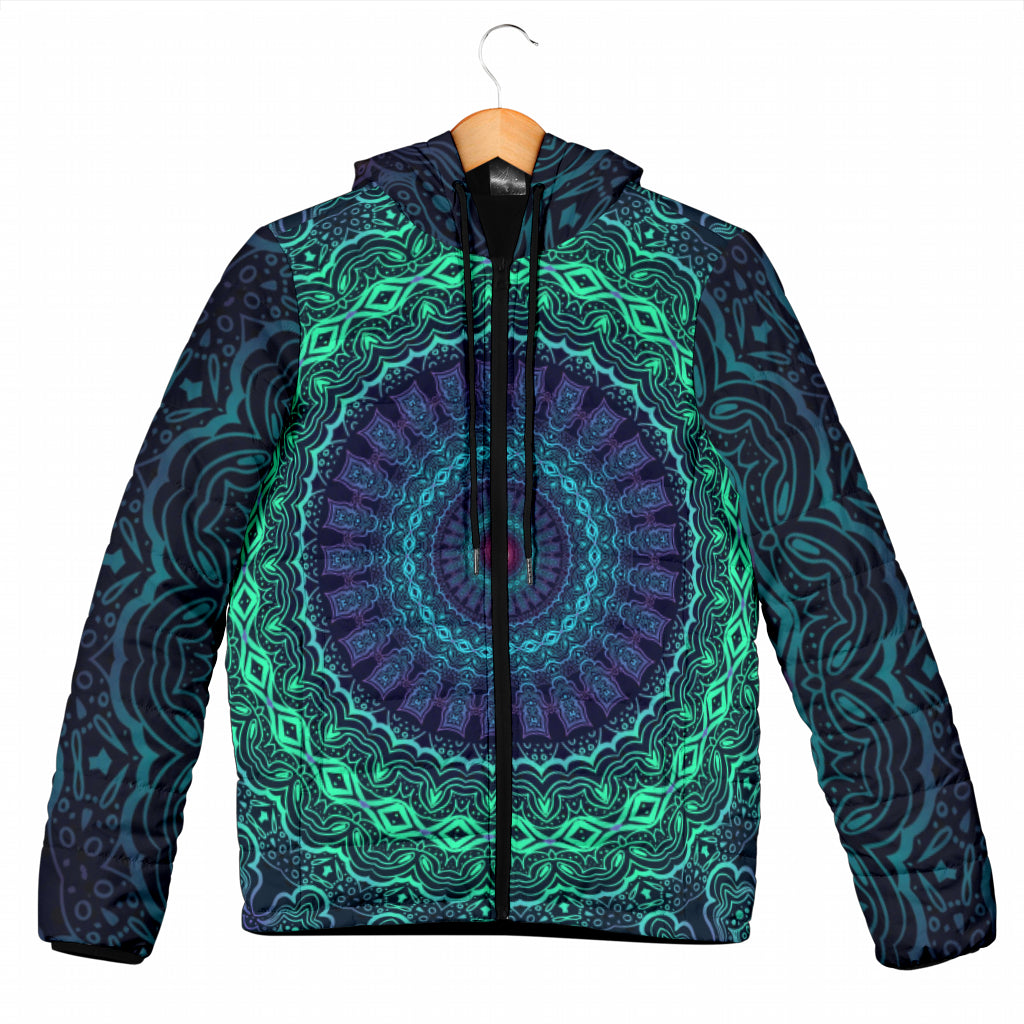 Trippy Mandala Womens Padded Hooded Jacket | Cameron Gray