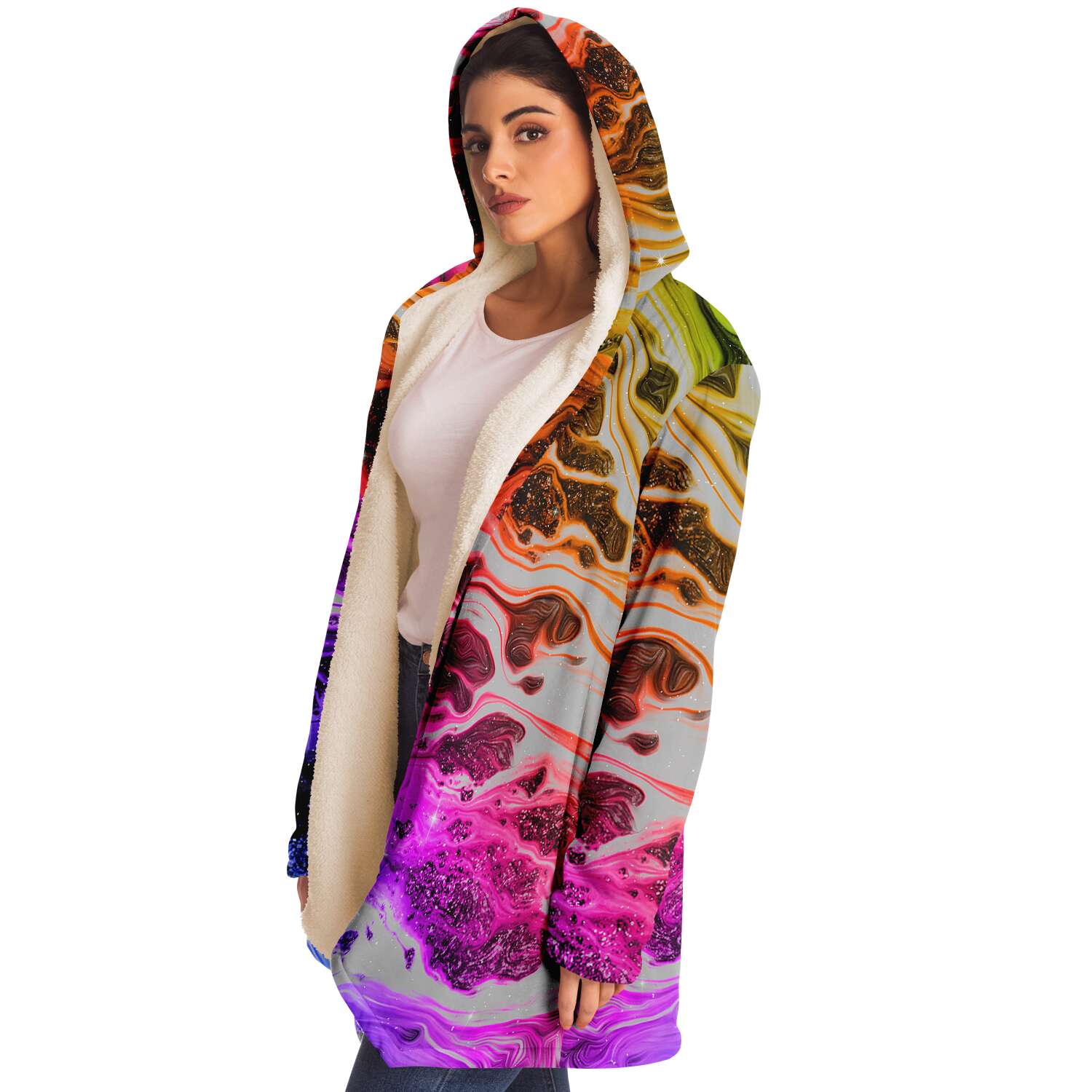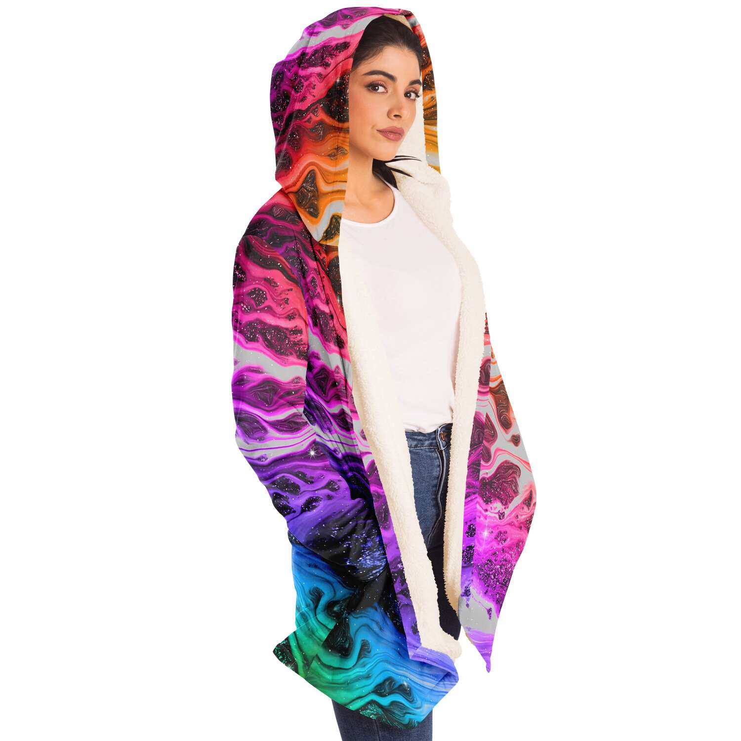 This luxurious cloak is made from an ultra-soft premium microfiber fleece lining. The outside is made with a micro-mink polyester fabric that allows the print to be high definition with vibrant colors. Featuring two deep side pockets to keep your belongings safe and your hands warm.
