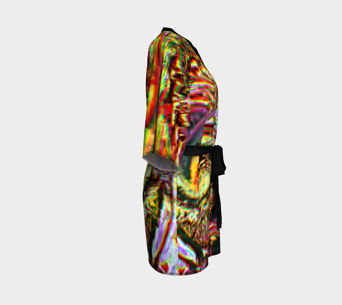 Artwork paired with luxury in this line of kimonos. Dramatic, elegant look. Perfect for special occasions, gallery shows and festivals!