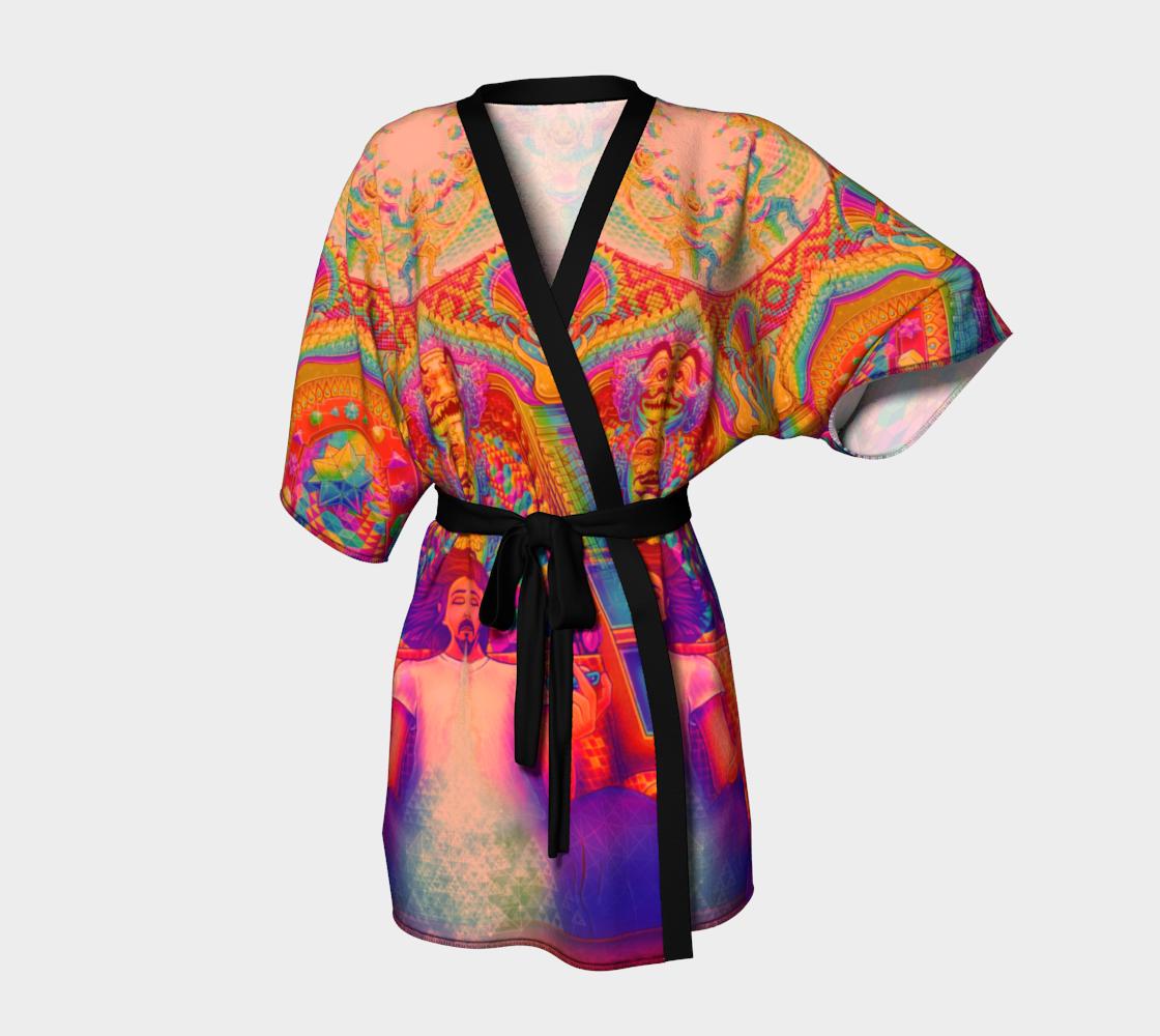 Artwork paired with luxury in this line of kimonos. Dramatic, elegant look. Perfect for special occasions, gallery shows and festivals!