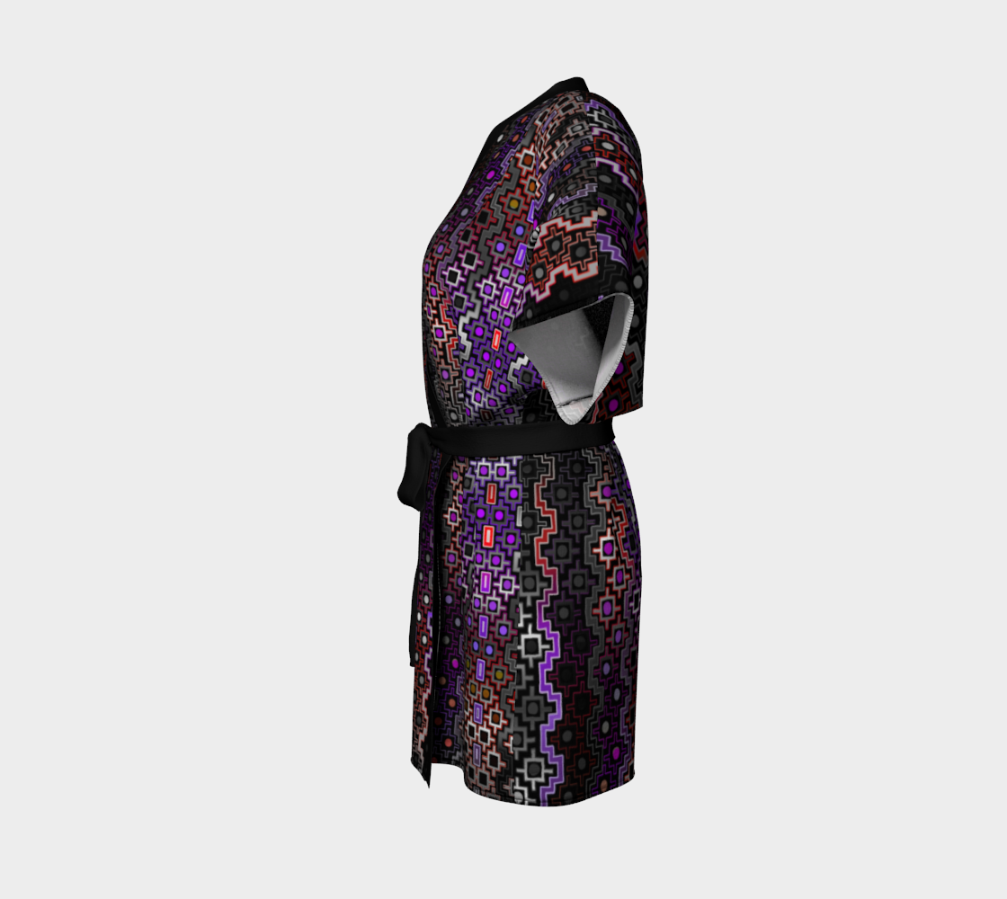 Artwork paired with luxury in this line of kimonos. Dramatic, elegant look. Perfect for special occasions, gallery shows and festivals!