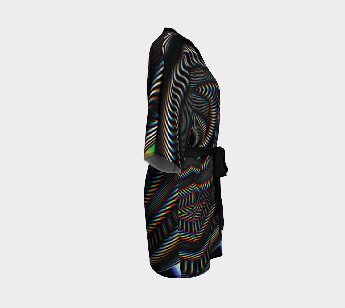 Artwork paired with luxury in this line of kimonos. Dramatic, elegant look. Perfect for special occasions, gallery shows and festivals!