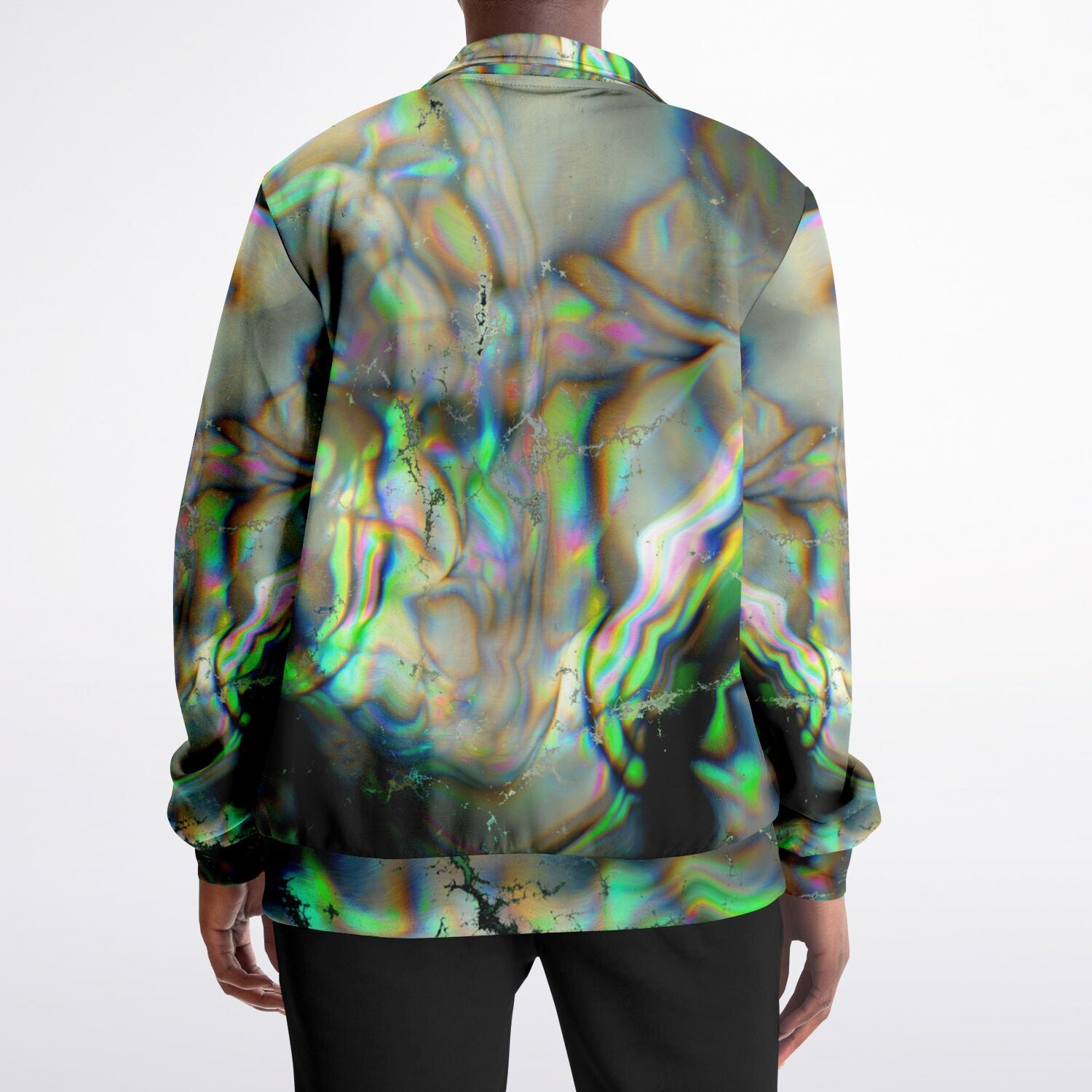 Presenting our sustainable track jacket, crafted from 95% recycled polyester and 5% spandex. With its smooth, tight-knit surface, it perfectly showcases vibrant prints and colors, while the inner surface ensures comfort for the wearer.