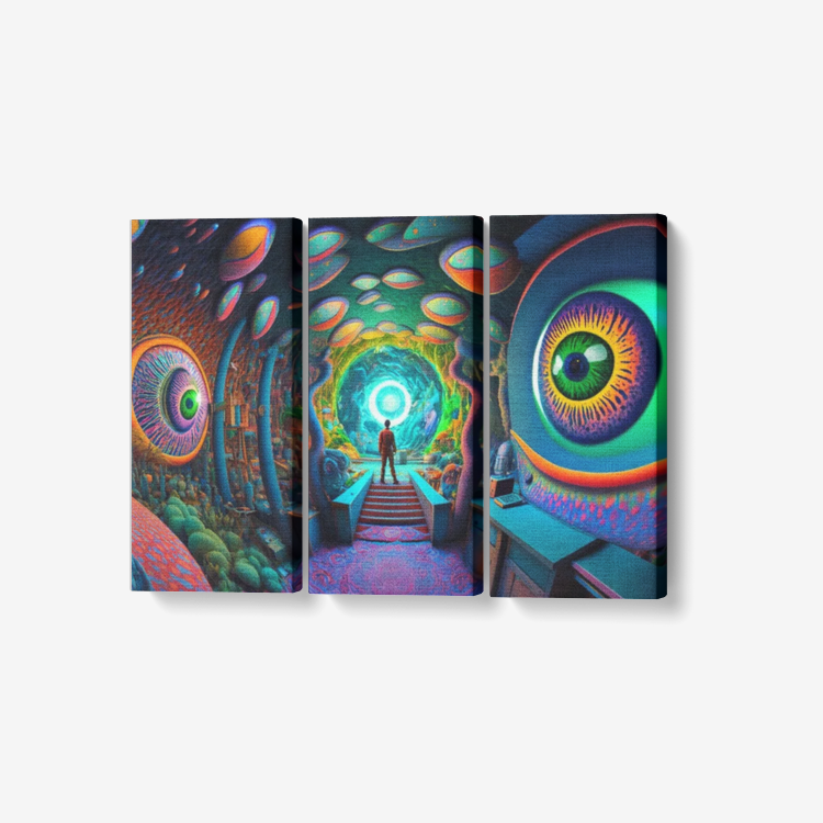 PORTAL ROOM 3 Piece Canvas Wall Art for Living Room - Framed Ready to Hang 3x8"x18" | ACIDMATH AI