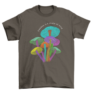 Series Psychedelic Fungi mushrooms neon quote "Freedom is a state of