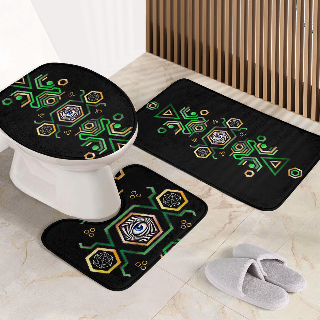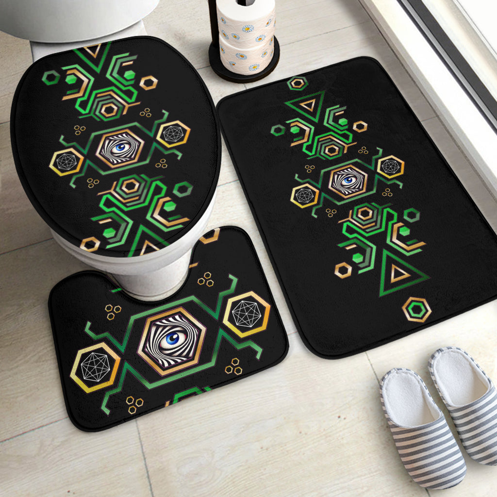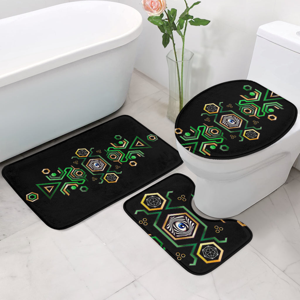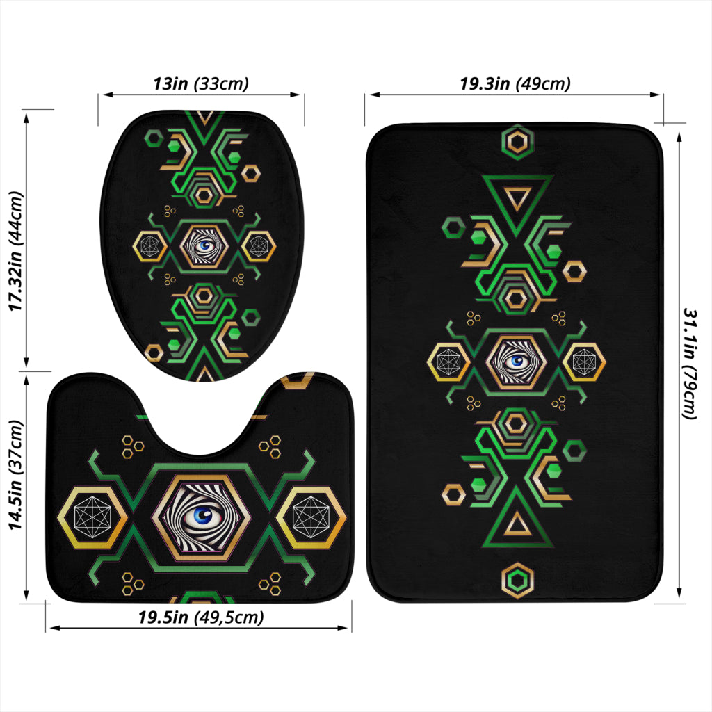 - Each set includes a decorative toilet seat cover, toilet mat, and bathroom mat.
