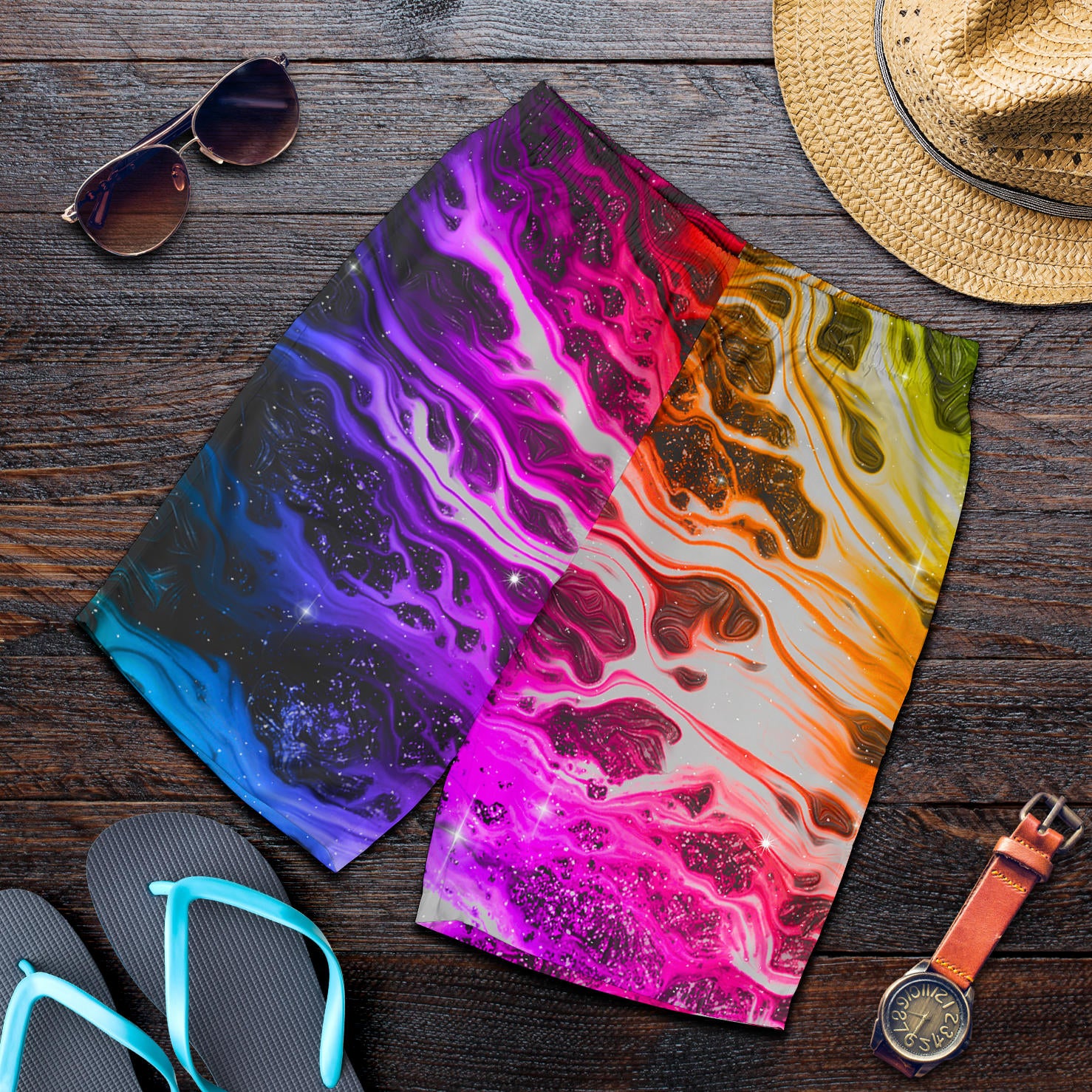 • Each pair of shorts is custom printed, cut and sewn just for you when you place your order – there may be small differences in the design on the seams due to the custom nature of the production process!