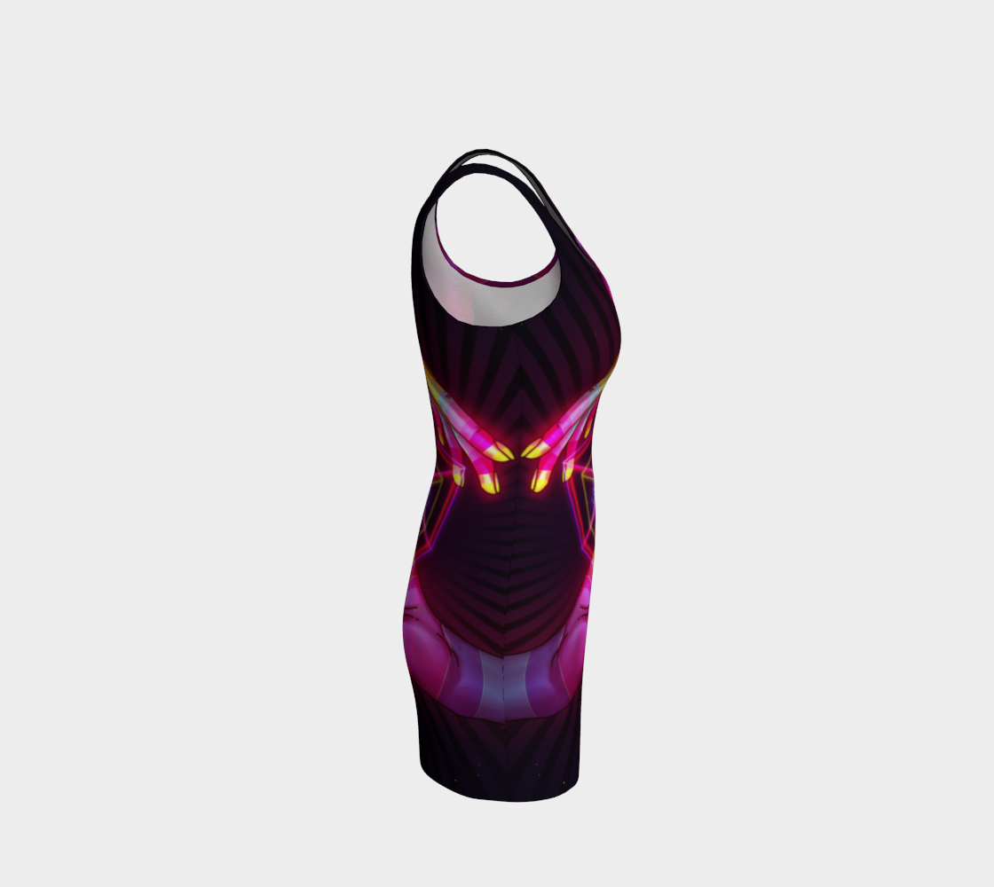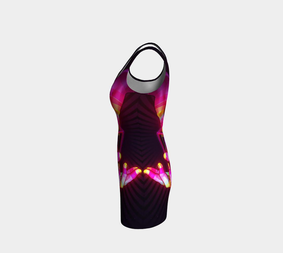 • Fitted dress hugs your body and the bottom falls just above mid-thigh on most people