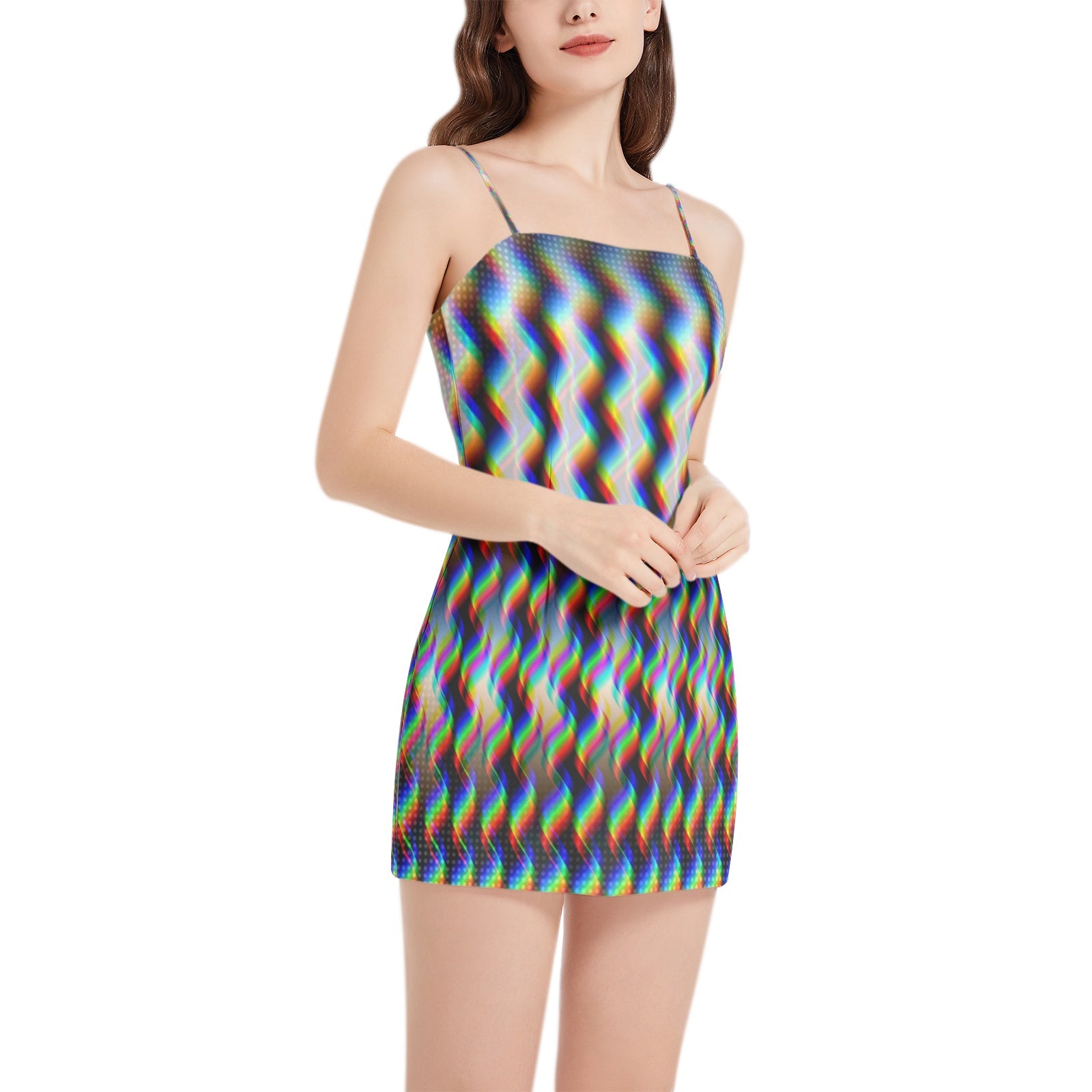 Sleeveless, Square neck, Spaghetti strap, Side hidden zipper, Tunic dress, Mini dress