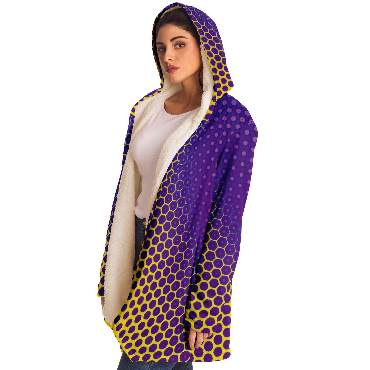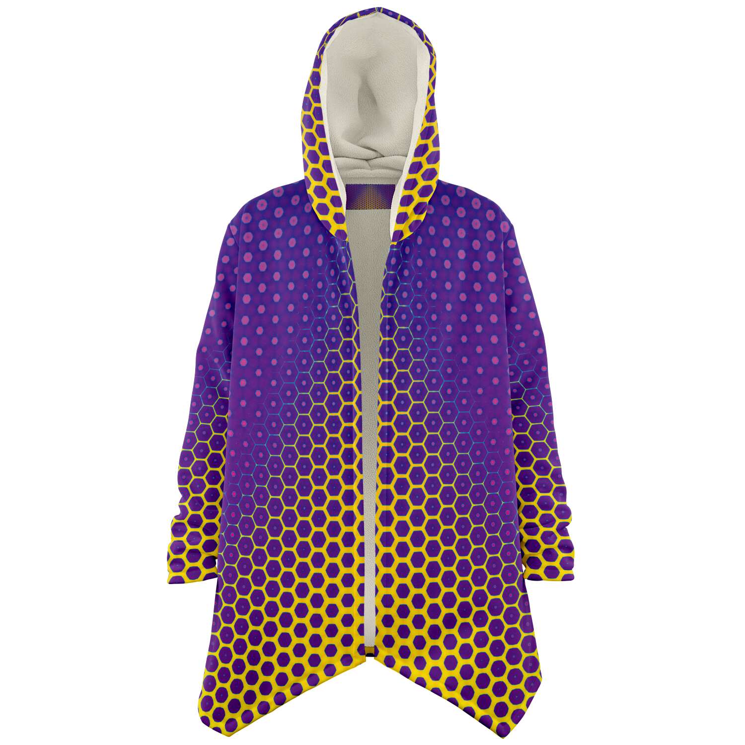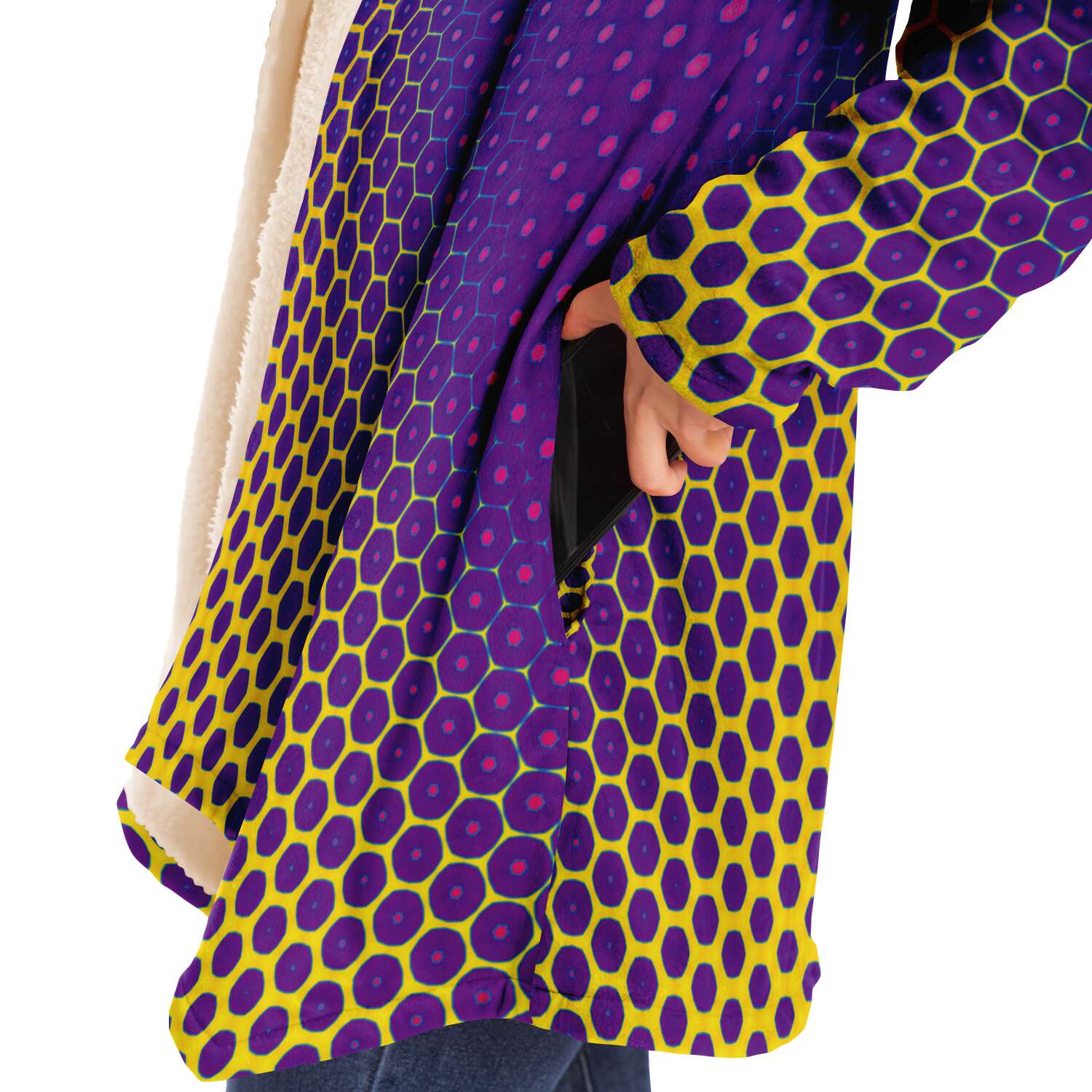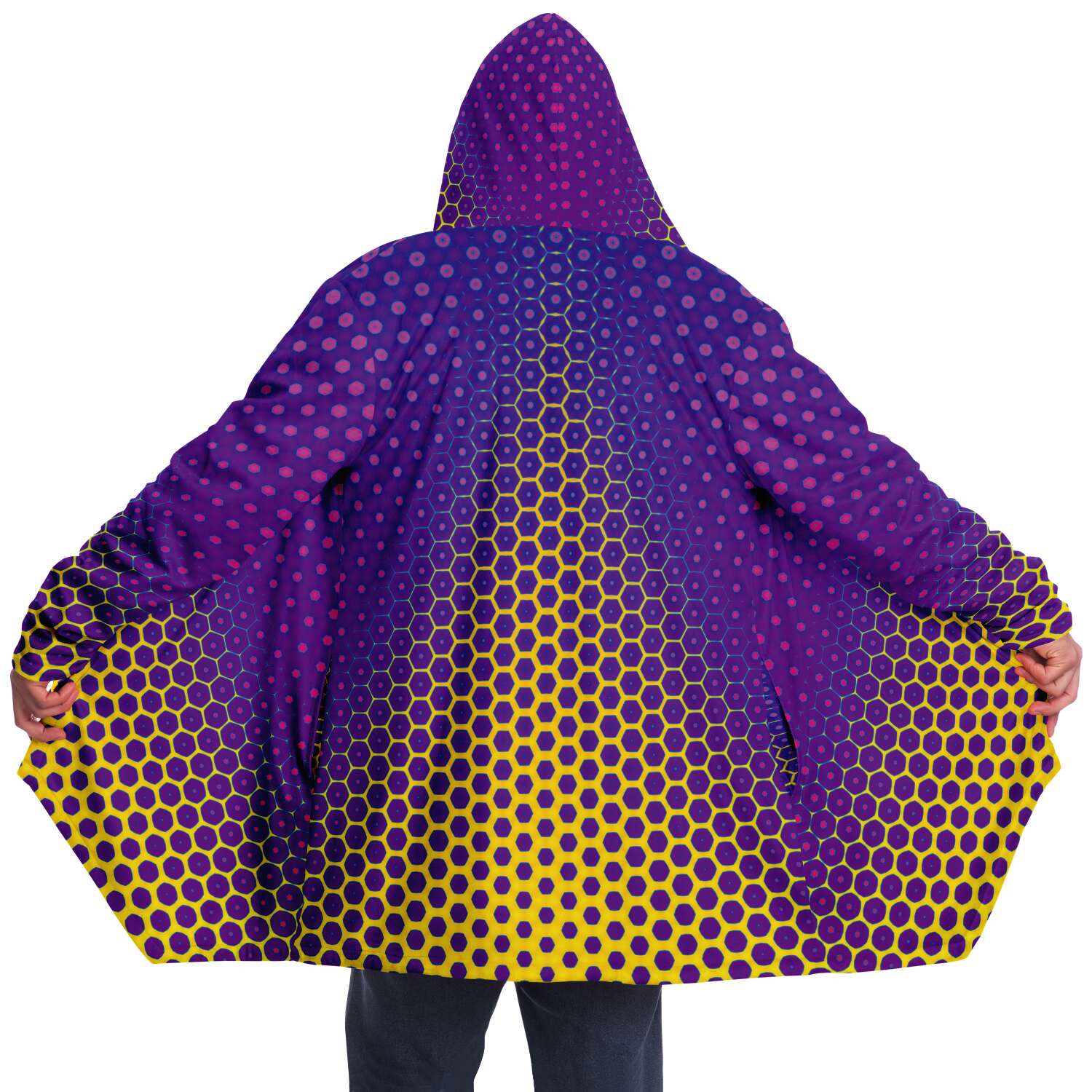 This luxurious cloak is made from an ultra-soft premium microfiber fleece lining. The outside is made with a micro-mink polyester fabric that allows the print to be high definition with vibrant colors. Featuring two deep side pockets to keep your belongings safe and your hands warm.