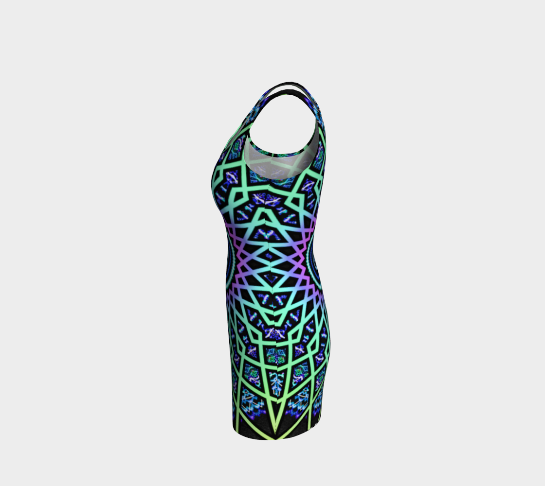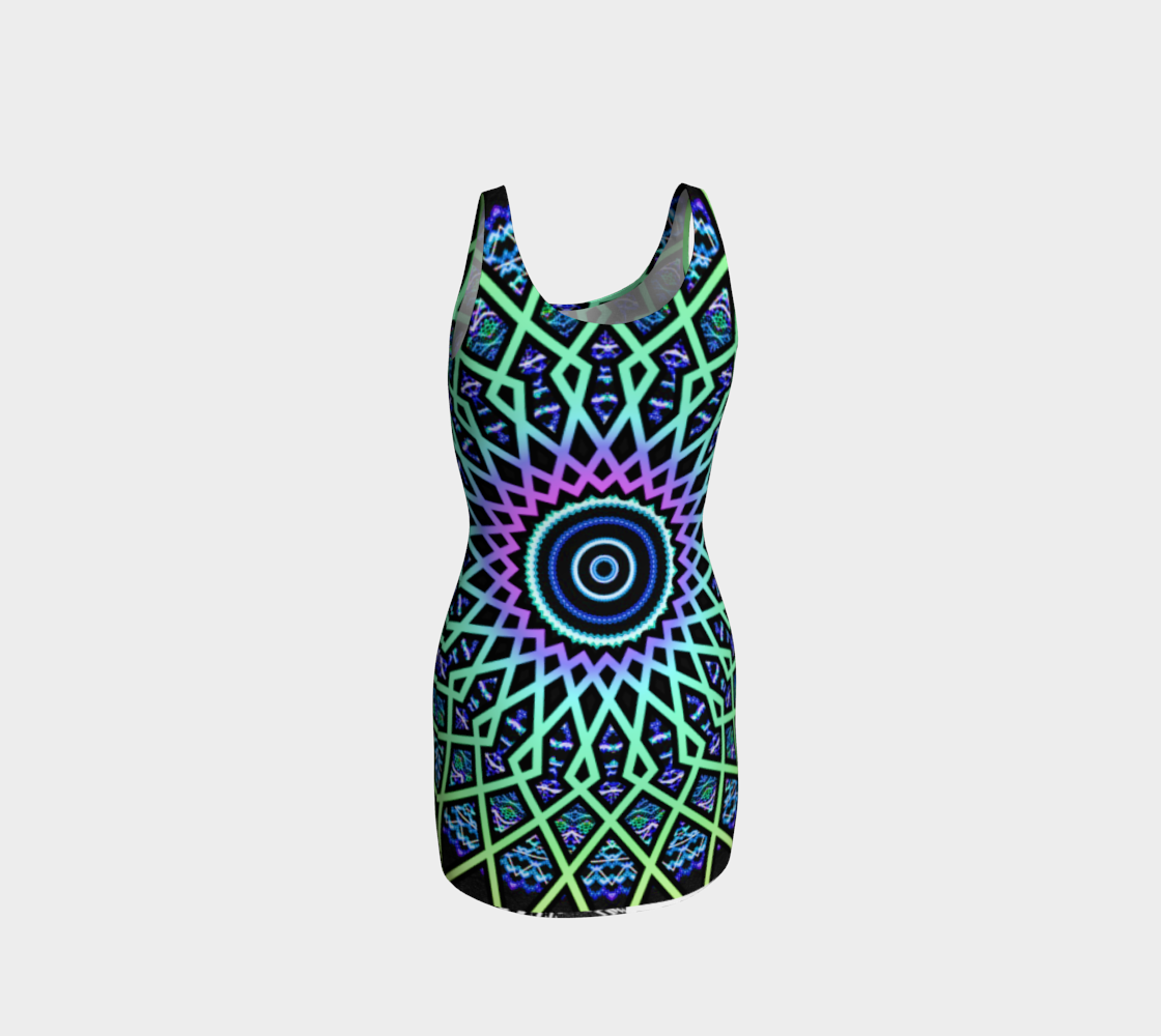 • Fitted dress hugs your body and the bottom falls just above mid-thigh on most people