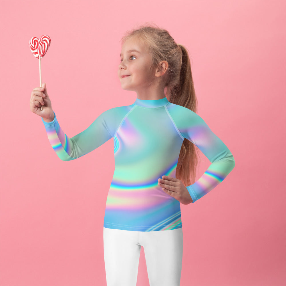 Protect the little ones from the elements with this colorful kids rash guard. Its sun-protective fabric and long body and sleeves make it perfect for running around on the beach, or just being active indoors.