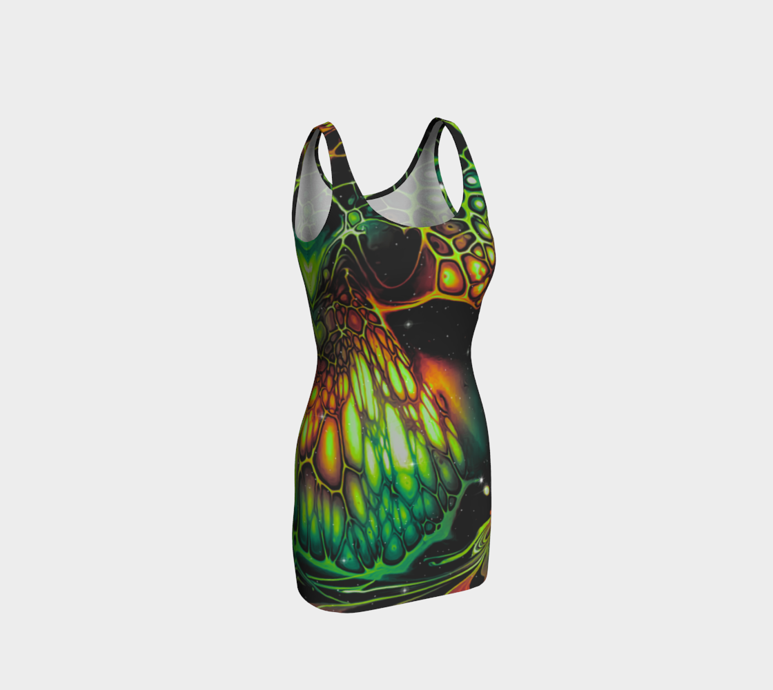 • Fitted dress hugs your body and the bottom falls just above mid-thigh on most people
