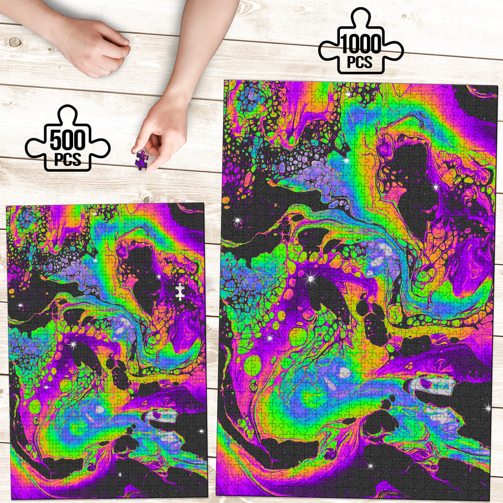 • These puzzles come in two sizes, 500 pieces or 1000 pieces – see sizing chart for detailed measurements.