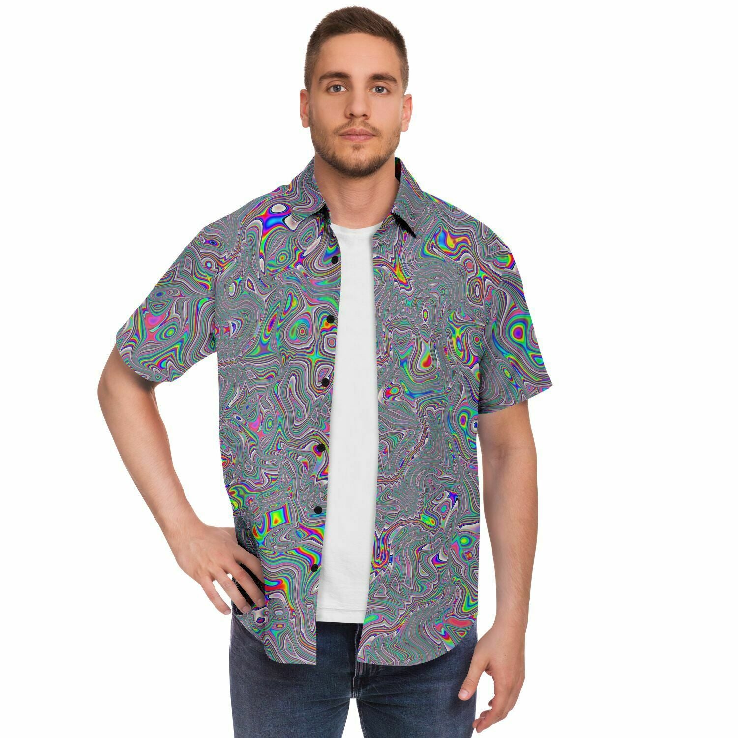 Stay cool with this fun printed short sleeve button down shirt. It comes in a regular width and spread collar. Perfect for those dressier hot days.