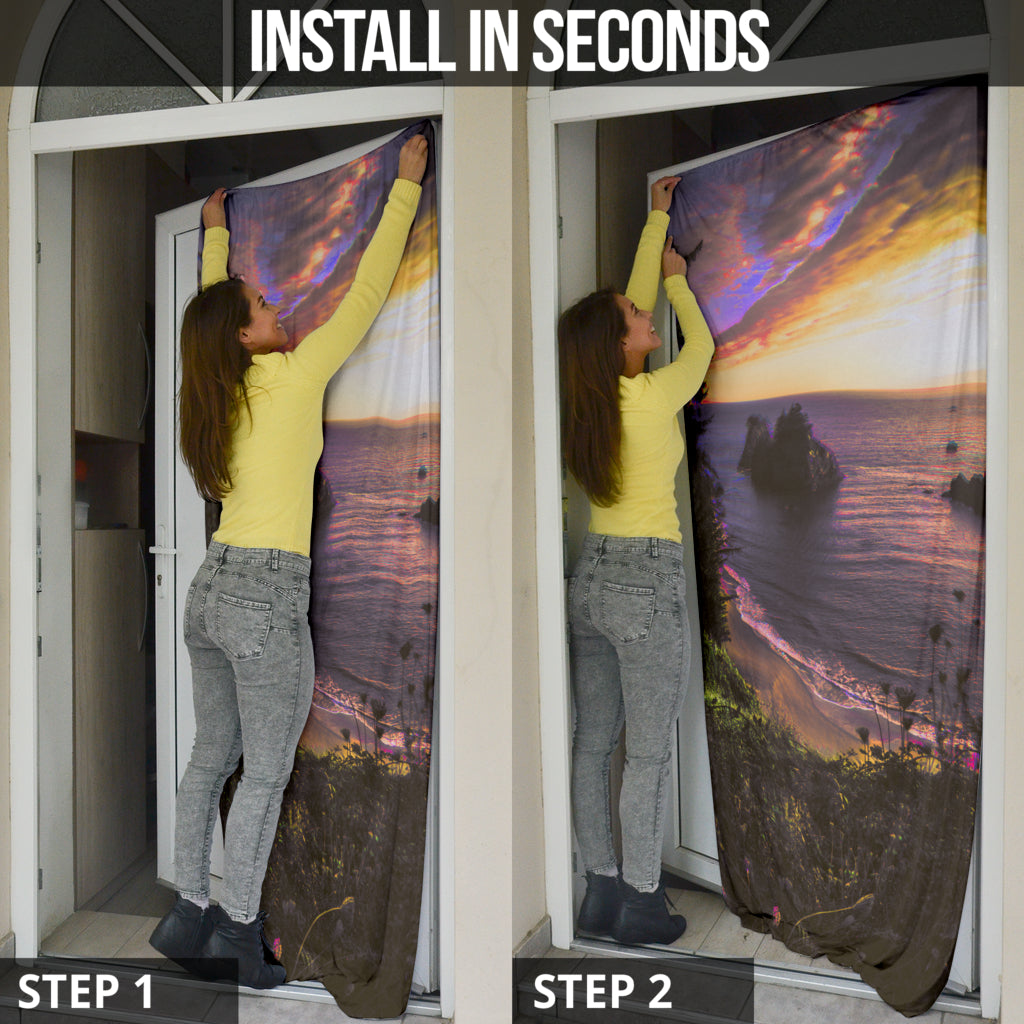 • Constructed with stretchable and elasticated fabric to fit all standard doors up to 82 inches in height!